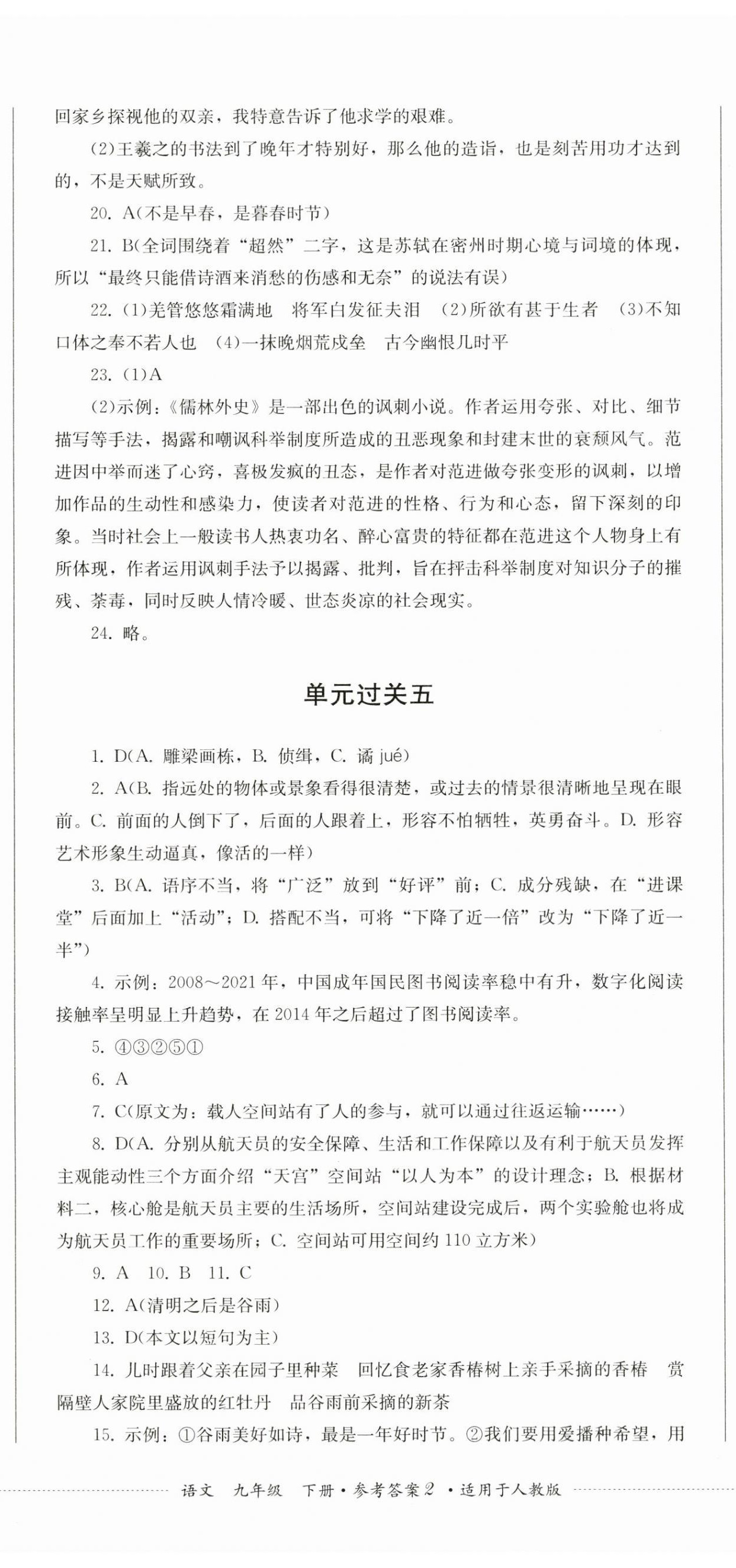 注:目前有些书本章节名称可能整理的还不是很完善,但都是按照顺序排列的,请同学们按照顺序仔细查找。练习册 2024年精练过关四川教育出版社九年级语文下册人教版 答案主要是用来给同学们做完题方便对答案用的,请勿直接抄袭。