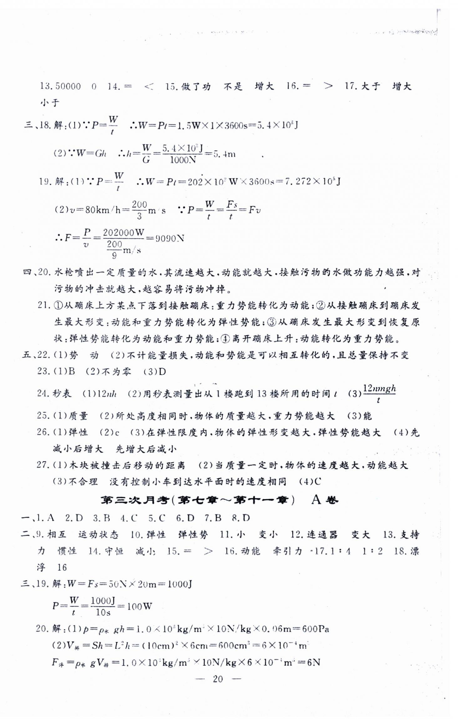 注:目前有些书本章节名称可能整理的还不是很完善,但都是按照顺序排列的,请同学们按照顺序仔细查找。练习册 2024年文曲星跟踪测试卷八年级物理下册人教版 答案主要是用来给同学们做完题方便对答案用的,请勿直接抄袭。