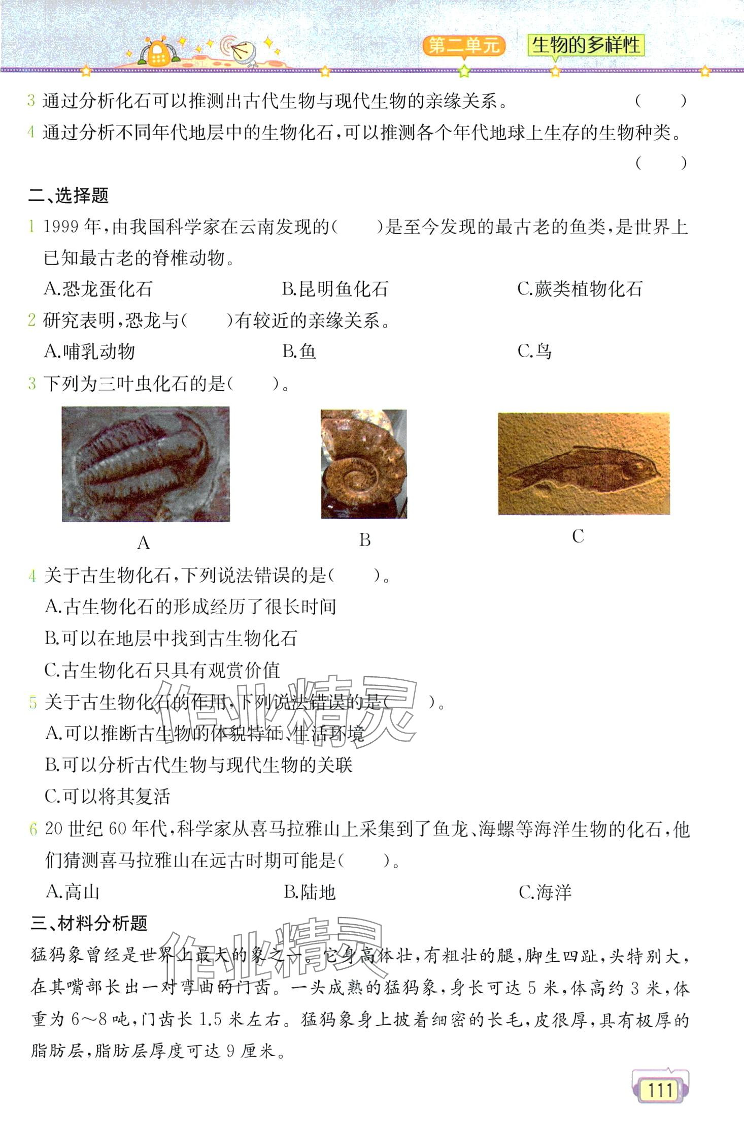注:目前有些书本章节名称可能整理的还不是很完善,但都是按照顺序排列的,请同学们按照顺序仔细查找。练习册 2024年教材课本六年级科学下册教科版 答案主要是用来给同学们做完题方便对答案用的,请勿直接抄袭。