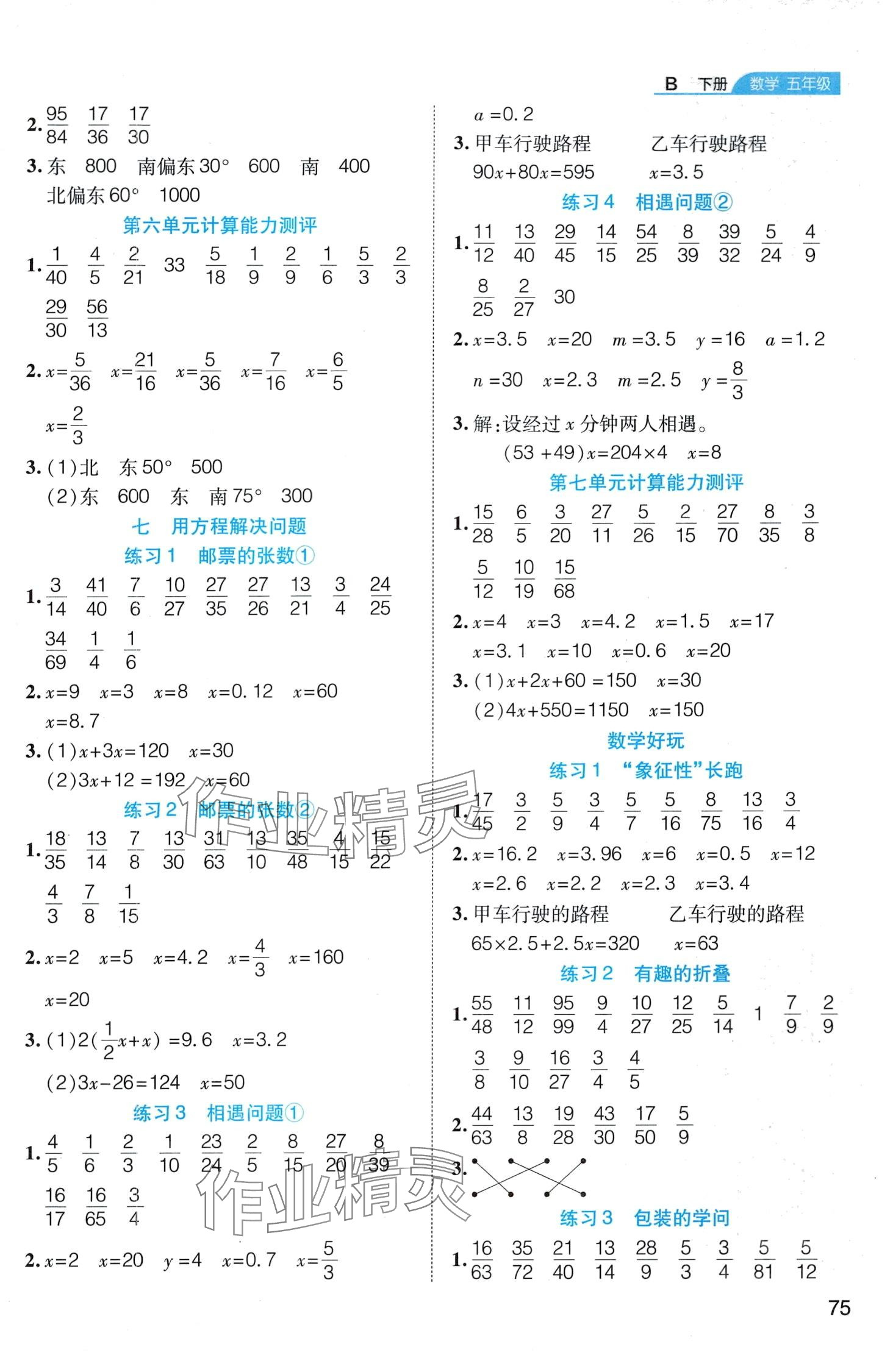 注:目前有些书本章节名称可能整理的还不是很完善,但都是按照顺序排列的,请同学们按照顺序仔细查找。练习册 2024年必考口算题卡五年级数学下册北师大版 答案主要是用来给同学们做完题方便对答案用的,请勿直接抄袭。