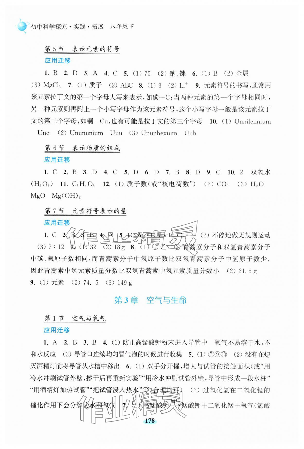 注:目前有些书本章节名称可能整理的还不是很完善,但都是按照顺序排列的,请同学们按照顺序仔细查找。练习册 2024年初中科学研究拓展实践八年级下册浙教版 答案主要是用来给同学们做完题方便对答案用的,请勿直接抄袭。