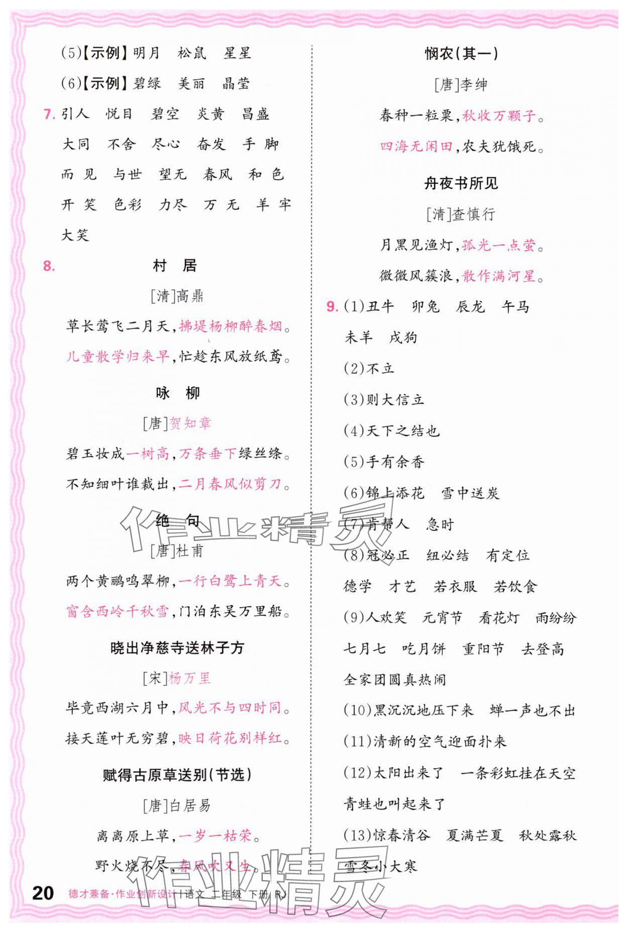 注:目前有些书本章节名称可能整理的还不是很完善,但都是按照顺序排列的,请同学们按照顺序仔细查找。练习册 2024年王朝霞德才兼备作业创新设计二年级语文下册人教版 答案主要是用来给同学们做完题方便对答案用的,请勿直接抄袭。
