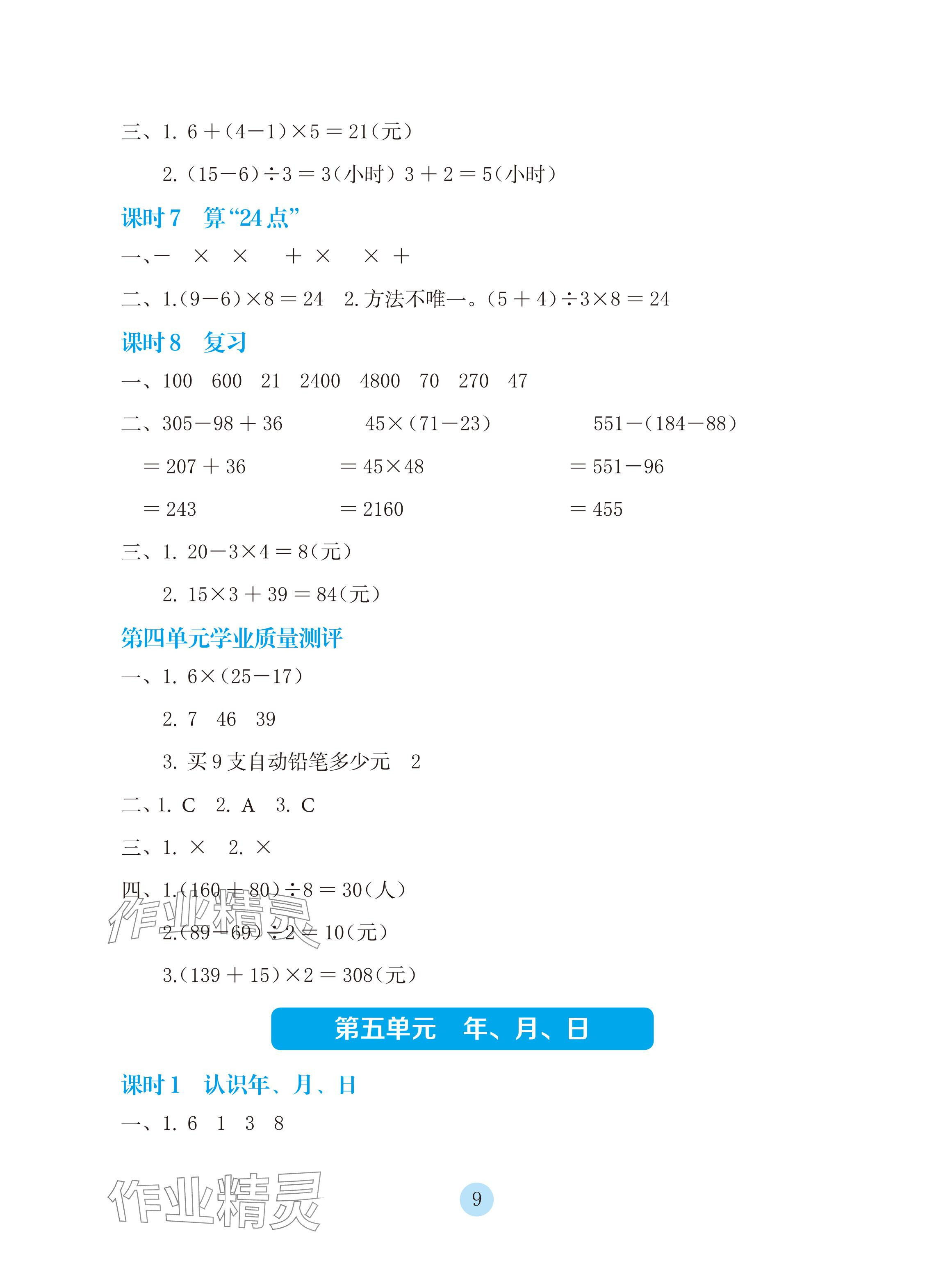 注:目前有些书本章节名称可能整理的还不是很完善,但都是按照顺序排列的,请同学们按照顺序仔细查找。练习册 2024年学生基础性作业三年级数学下册苏教版 答案主要是用来给同学们做完题方便对答案用的,请勿直接抄袭。