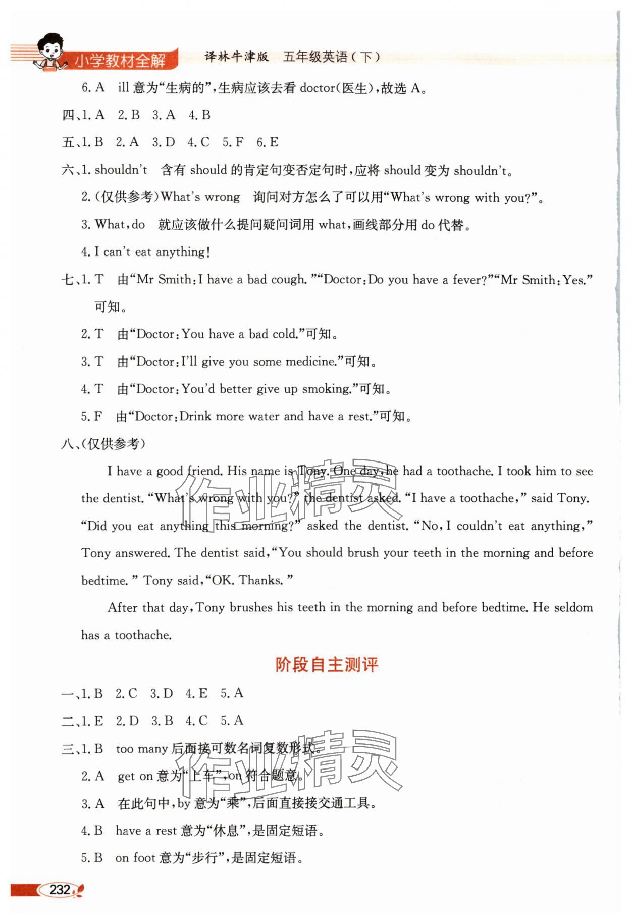 注:目前有些书本章节名称可能整理的还不是很完善,但都是按照顺序排列的,请同学们按照顺序仔细查找。练习册 2024年教材全解五年级英语下册译林版 答案主要是用来给同学们做完题方便对答案用的,请勿直接抄袭。