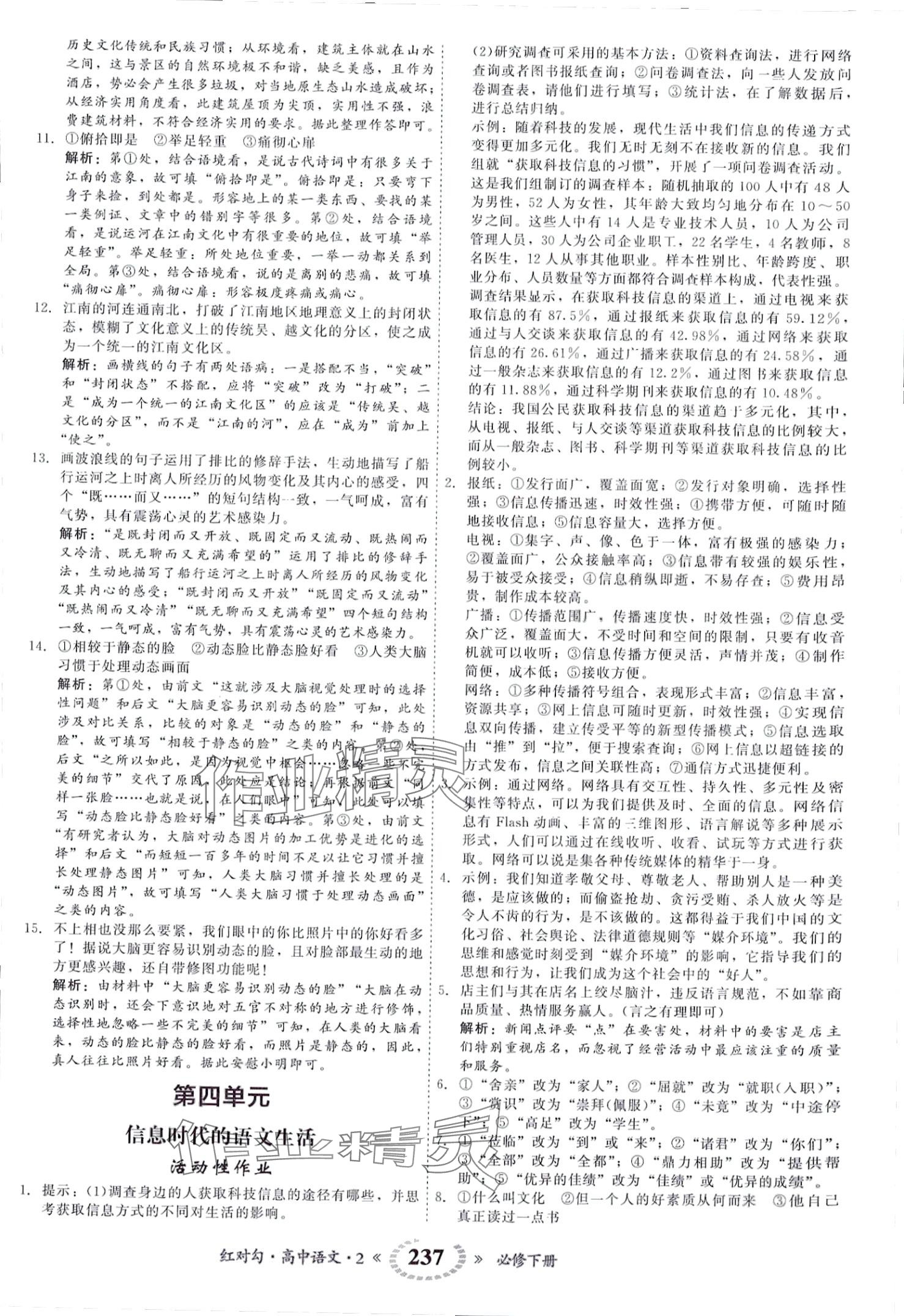 注:目前有些书本章节名称可能整理的还不是很完善,但都是按照顺序排列的,请同学们按照顺序仔细查找。练习册 2024年红对勾45分钟作业与单元评估高中语文必修下册人教版 答案主要是用来给同学们做完题方便对答案用的,请勿直接抄袭。