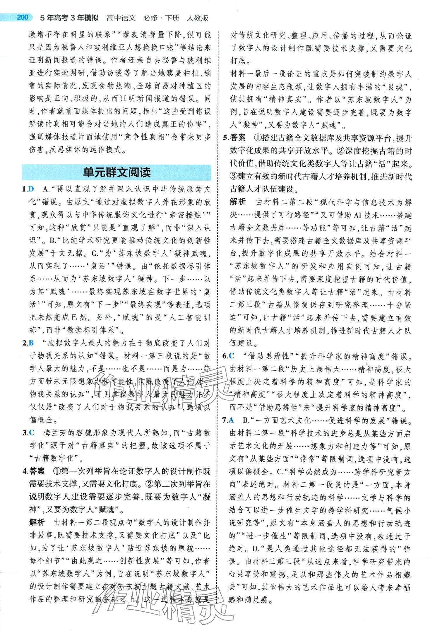 注:目前有些书本章节名称可能整理的还不是很完善,但都是按照顺序排列的,请同学们按照顺序仔细查找。练习册 2024年5年高考3年模拟高中语文必修下册人教版 答案主要是用来给同学们做完题方便对答案用的,请勿直接抄袭。