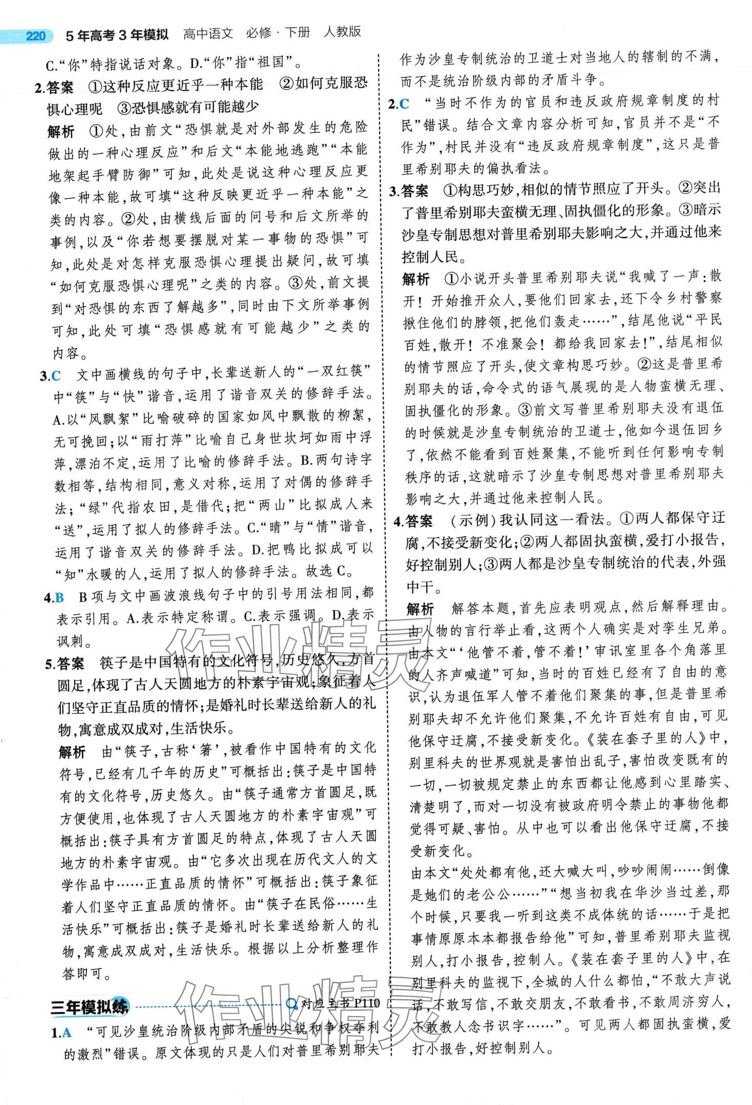 注:目前有些书本章节名称可能整理的还不是很完善,但都是按照顺序排列的,请同学们按照顺序仔细查找。练习册 2024年5年高考3年模拟高中语文必修下册人教版 答案主要是用来给同学们做完题方便对答案用的,请勿直接抄袭。