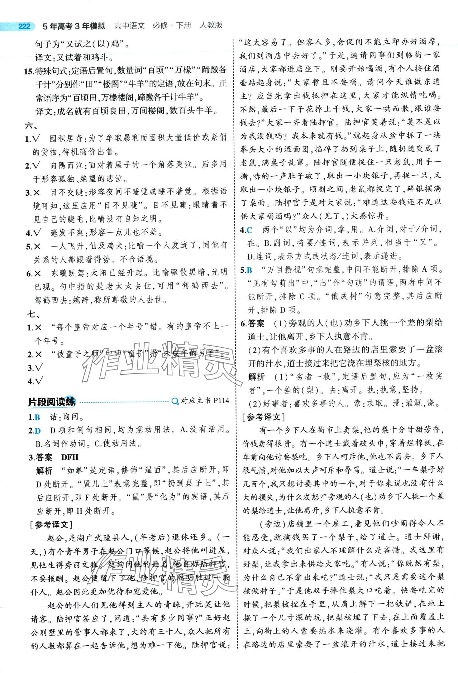 注:目前有些书本章节名称可能整理的还不是很完善,但都是按照顺序排列的,请同学们按照顺序仔细查找。练习册 2024年5年高考3年模拟高中语文必修下册人教版 答案主要是用来给同学们做完题方便对答案用的,请勿直接抄袭。
