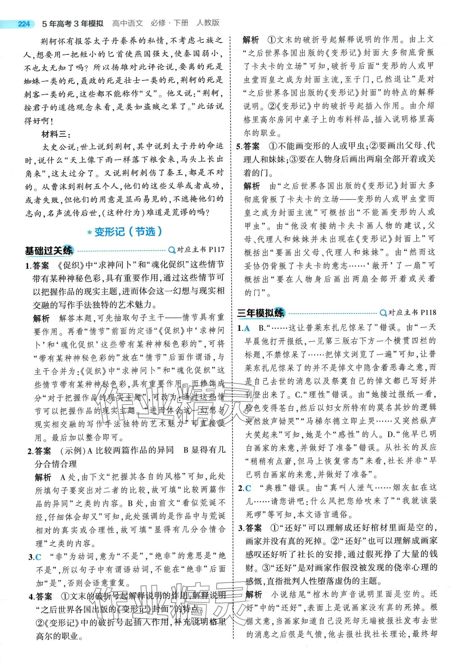 注:目前有些书本章节名称可能整理的还不是很完善,但都是按照顺序排列的,请同学们按照顺序仔细查找。练习册 2024年5年高考3年模拟高中语文必修下册人教版 答案主要是用来给同学们做完题方便对答案用的,请勿直接抄袭。