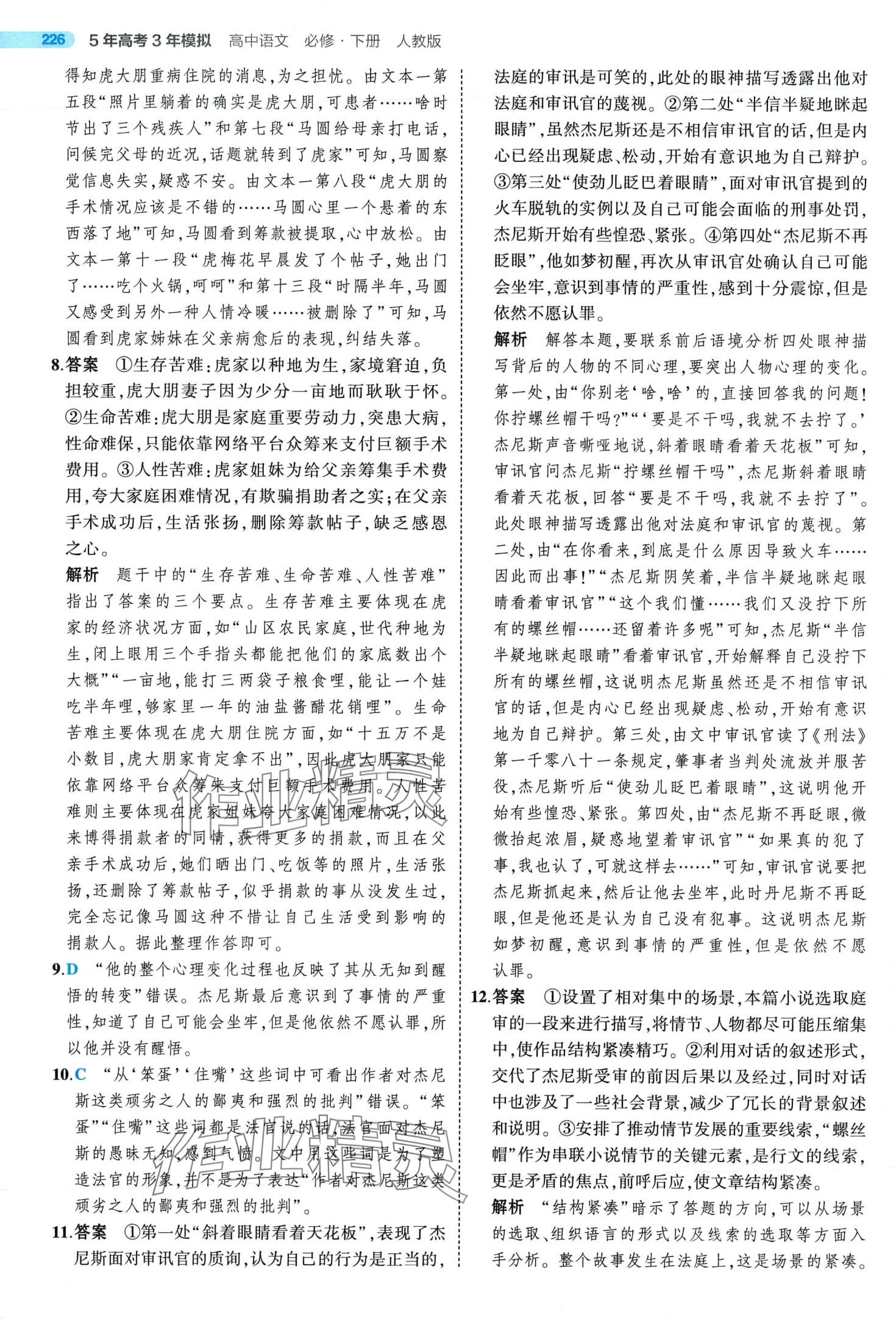 注:目前有些书本章节名称可能整理的还不是很完善,但都是按照顺序排列的,请同学们按照顺序仔细查找。练习册 2024年5年高考3年模拟高中语文必修下册人教版 答案主要是用来给同学们做完题方便对答案用的,请勿直接抄袭。