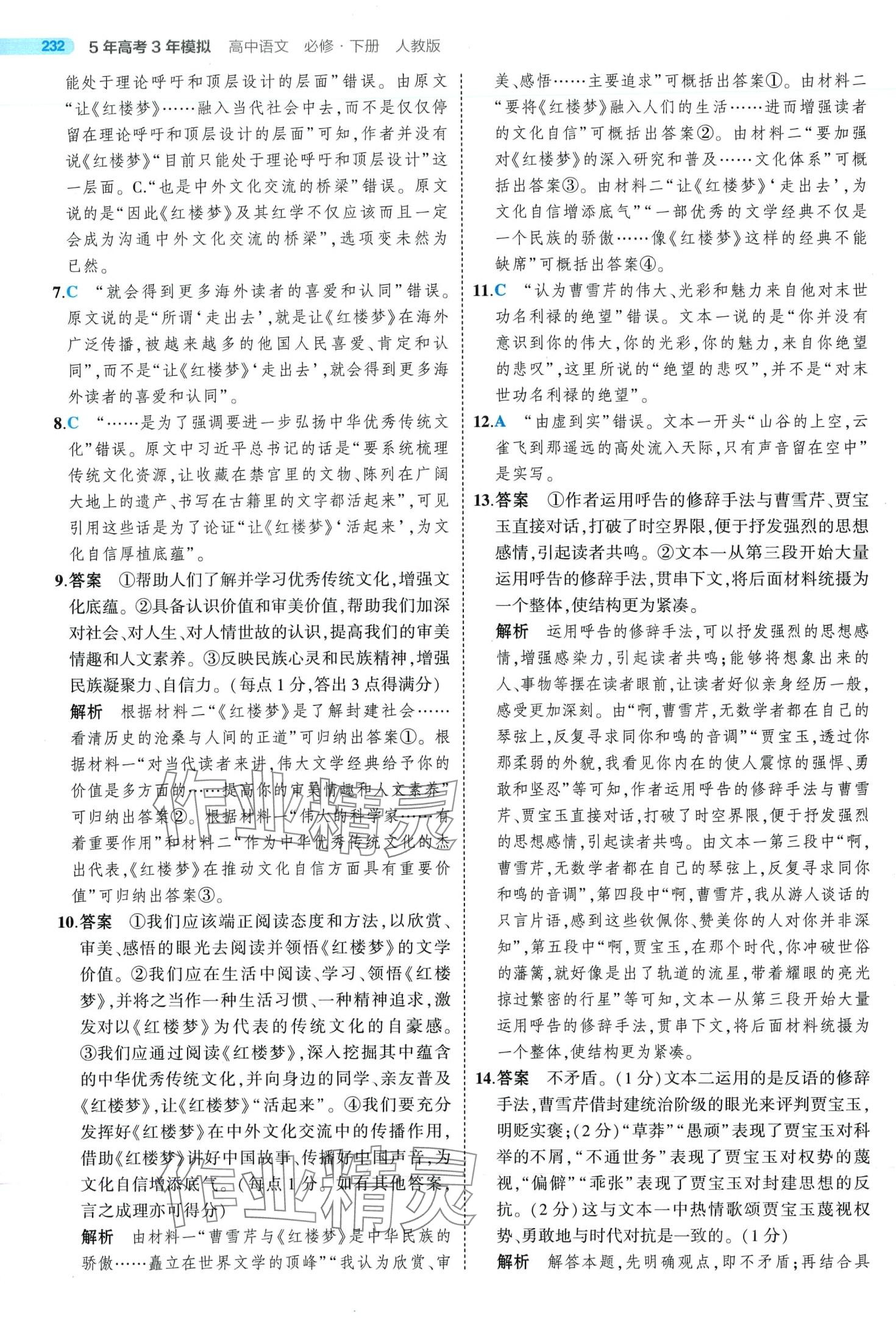 注:目前有些书本章节名称可能整理的还不是很完善,但都是按照顺序排列的,请同学们按照顺序仔细查找。练习册 2024年5年高考3年模拟高中语文必修下册人教版 答案主要是用来给同学们做完题方便对答案用的,请勿直接抄袭。