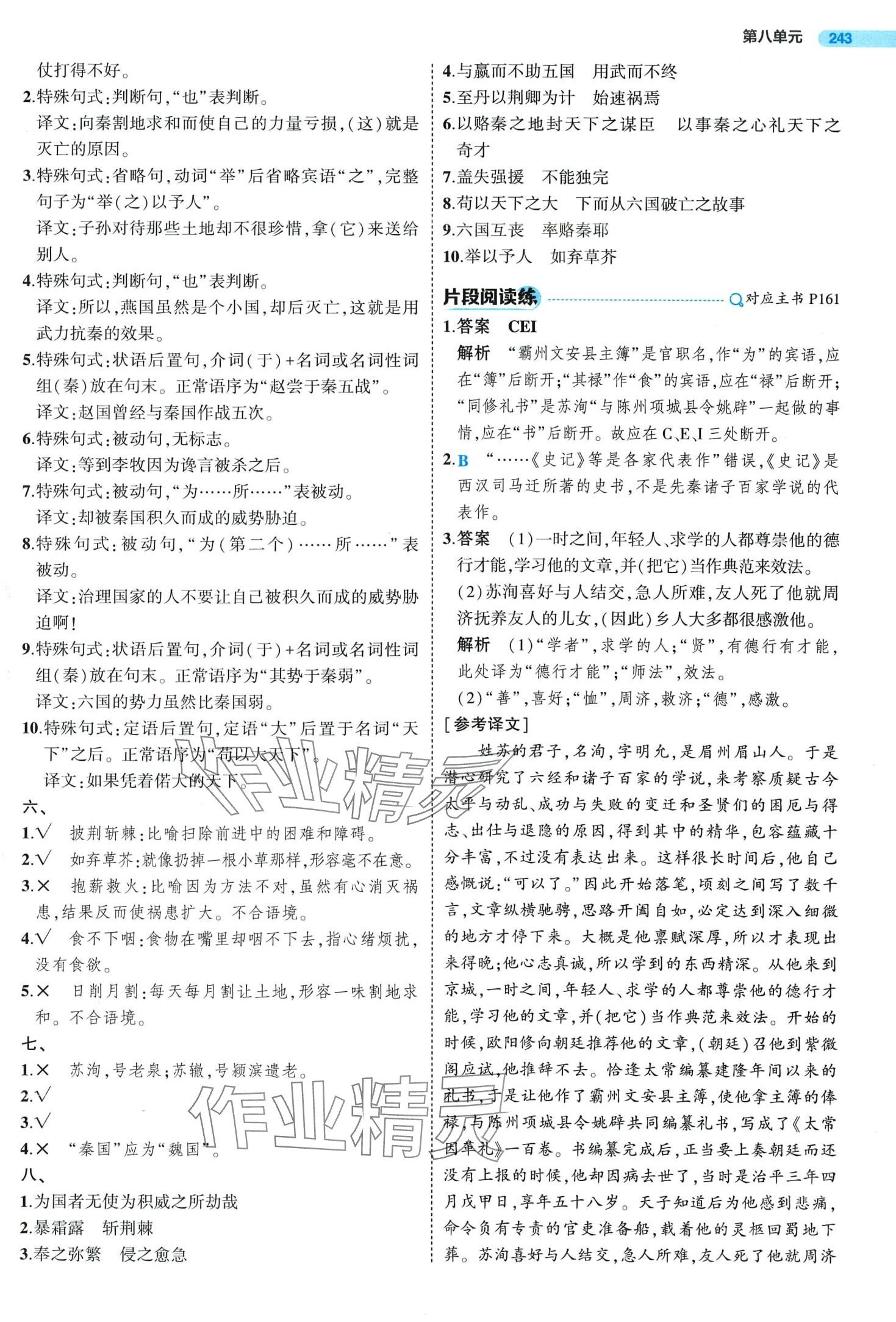 注:目前有些书本章节名称可能整理的还不是很完善,但都是按照顺序排列的,请同学们按照顺序仔细查找。练习册 2024年5年高考3年模拟高中语文必修下册人教版 答案主要是用来给同学们做完题方便对答案用的,请勿直接抄袭。
