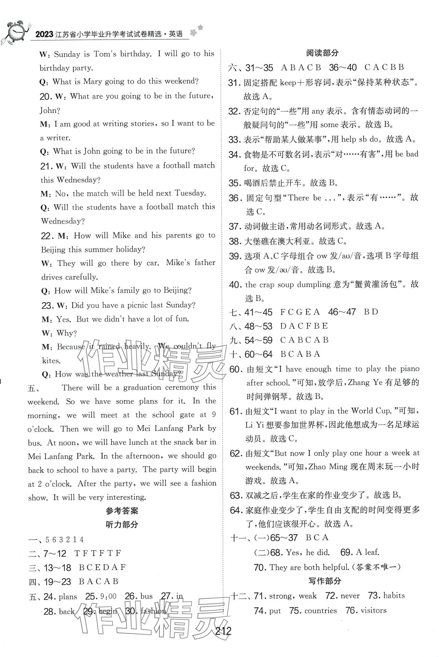 注:目前有些书本章节名称可能整理的还不是很完善,但都是按照顺序排列的,请同学们按照顺序仔细查找。练习册 2024年考必胜小学毕业升学考试试卷精选六年级英语全一册通用版 答案主要是用来给同学们做完题方便对答案用的,请勿直接抄袭。