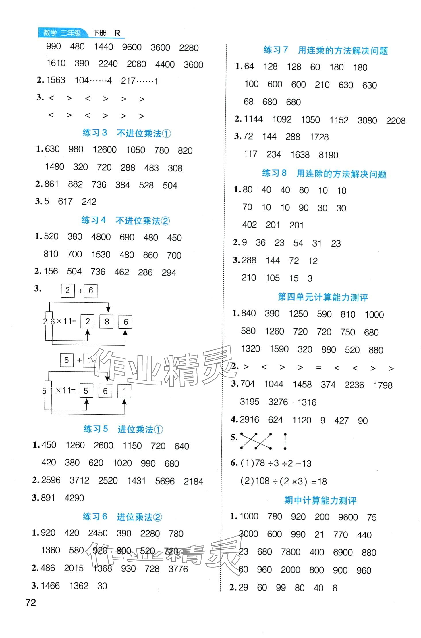 注:目前有些书本章节名称可能整理的还不是很完善,但都是按照顺序排列的,请同学们按照顺序仔细查找。练习册 2024年必考口算题卡三年级数学下册人教版 答案主要是用来给同学们做完题方便对答案用的,请勿直接抄袭。