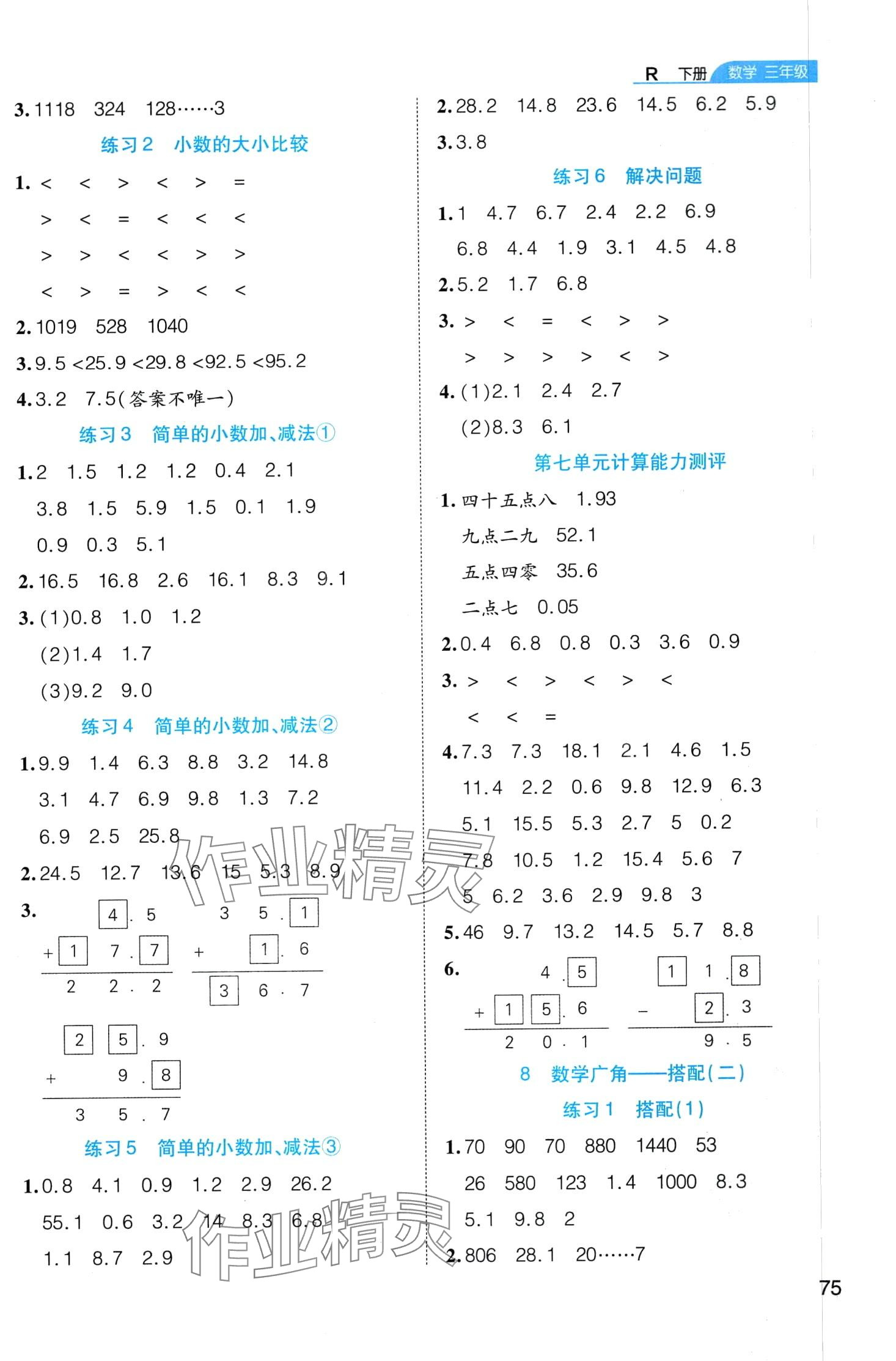 注:目前有些书本章节名称可能整理的还不是很完善,但都是按照顺序排列的,请同学们按照顺序仔细查找。练习册 2024年必考口算题卡三年级数学下册人教版 答案主要是用来给同学们做完题方便对答案用的,请勿直接抄袭。