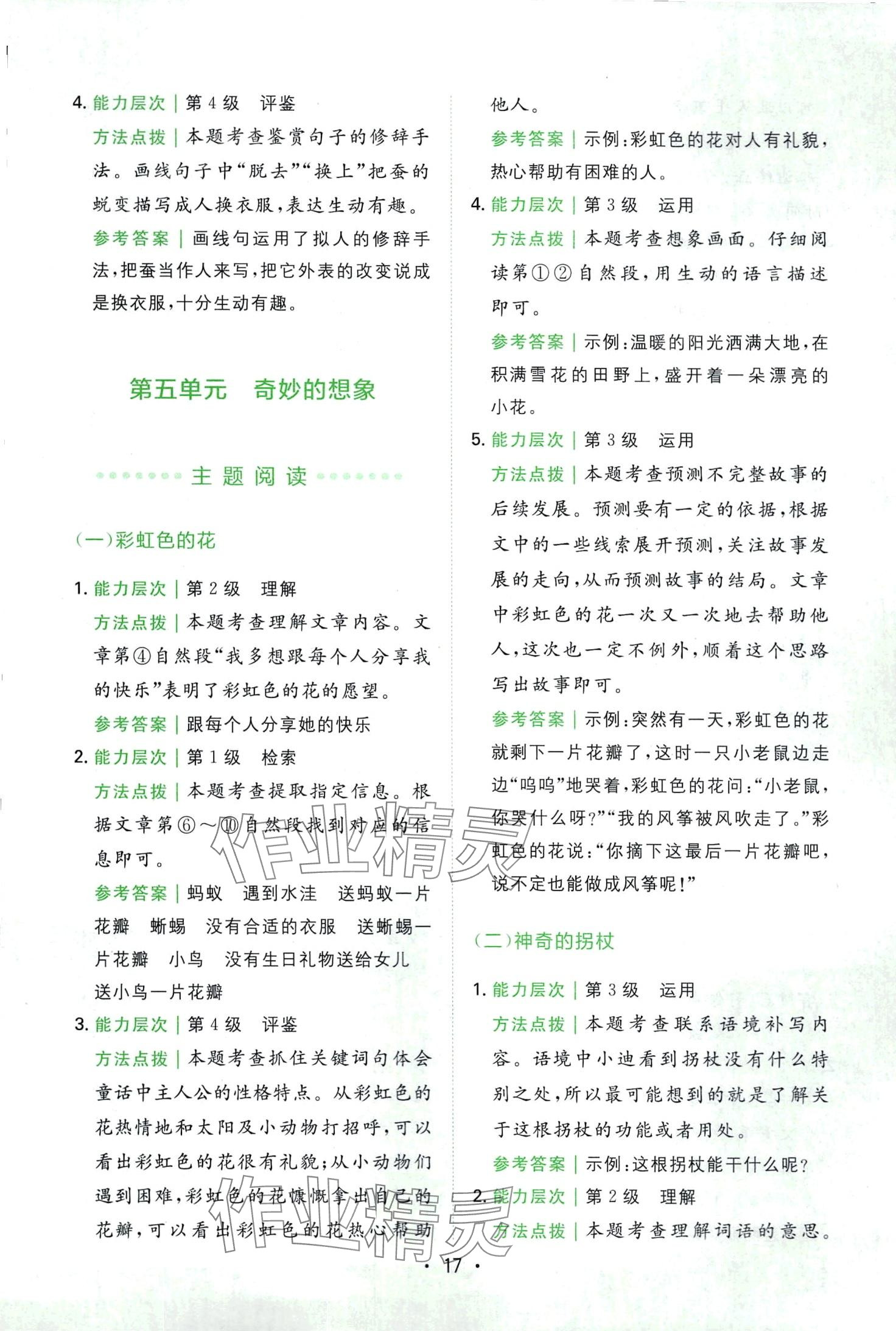注:目前有些书本章节名称可能整理的还不是很完善,但都是按照顺序排列的,请同学们按照顺序仔细查找。练习册 2024年胜在阅读小学语文同步阅读与写作全能训练三年级B版人教版 答案主要是用来给同学们做完题方便对答案用的,请勿直接抄袭。