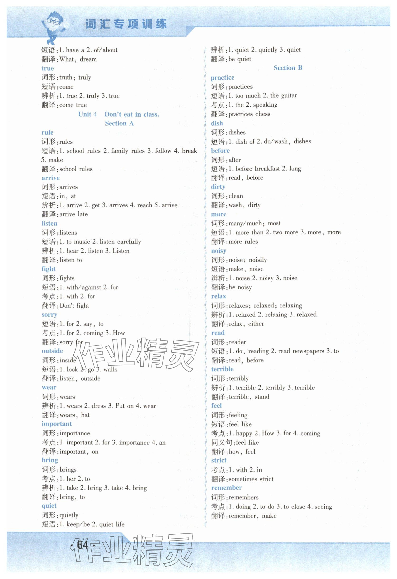 注:目前有些书本章节名称可能整理的还不是很完善,但都是按照顺序排列的,请同学们按照顺序仔细查找。练习册 2024年精析巧练七年级英语下册人教版 答案主要是用来给同学们做完题方便对答案用的,请勿直接抄袭。
