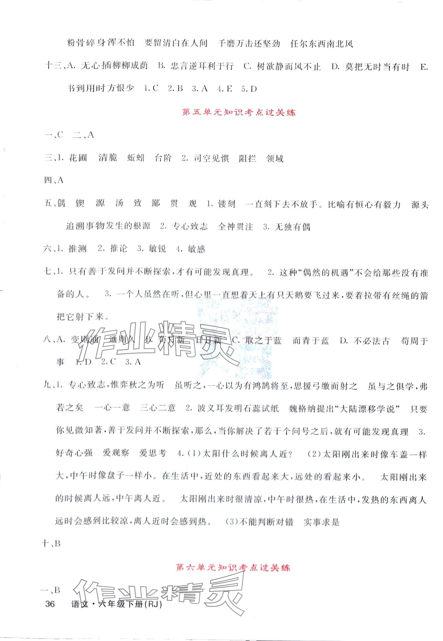 注:目前有些书本章节名称可能整理的还不是很完善,但都是按照顺序排列的,请同学们按照顺序仔细查找。练习册 2024年课堂点睛六年级语文下册人教版湖北专版 答案主要是用来给同学们做完题方便对答案用的,请勿直接抄袭。