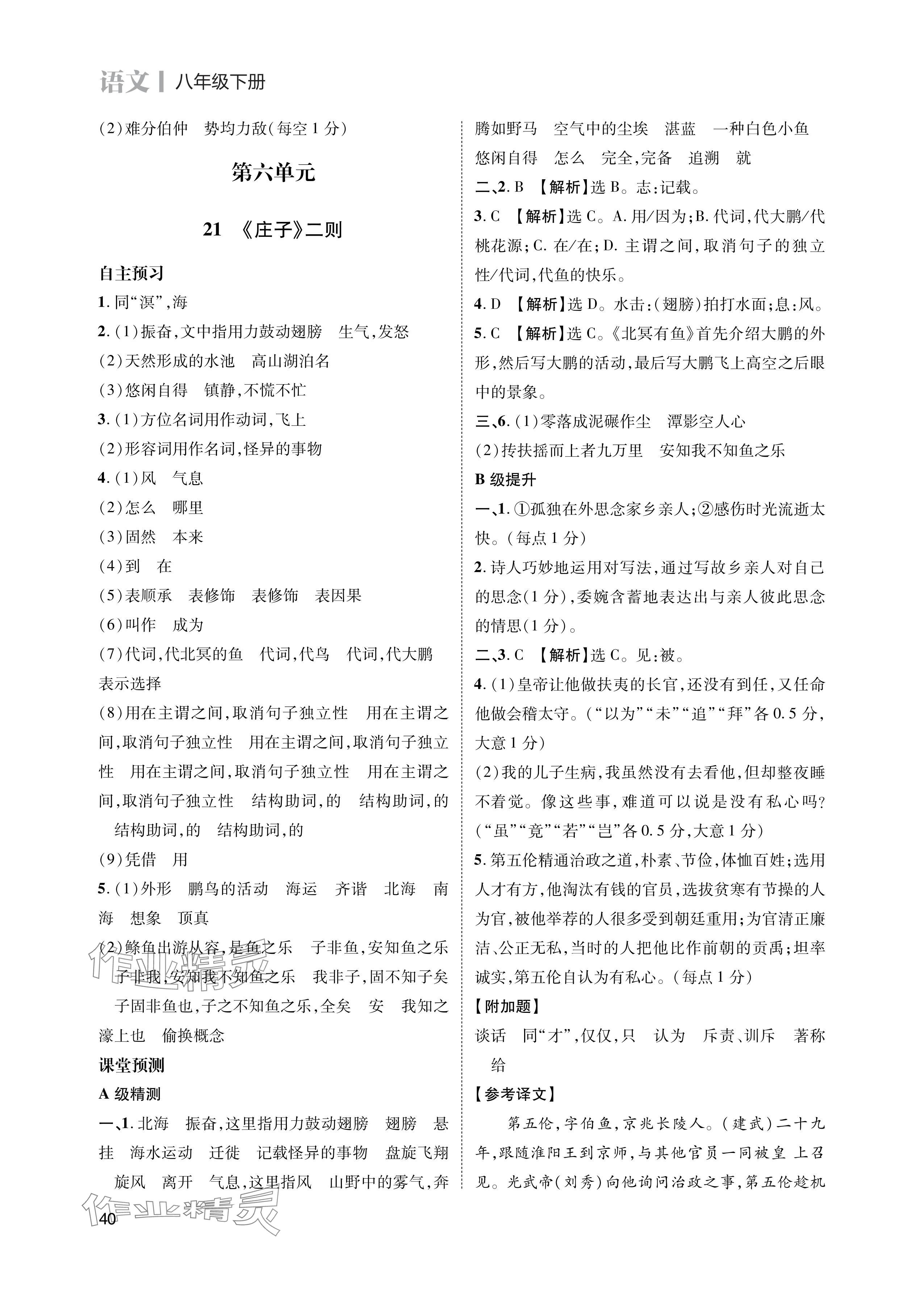 注:目前有些书本章节名称可能整理的还不是很完善,但都是按照顺序排列的,请同学们按照顺序仔细查找。练习册 2024年第一学堂八年级语文下册人教版 答案主要是用来给同学们做完题方便对答案用的,请勿直接抄袭。