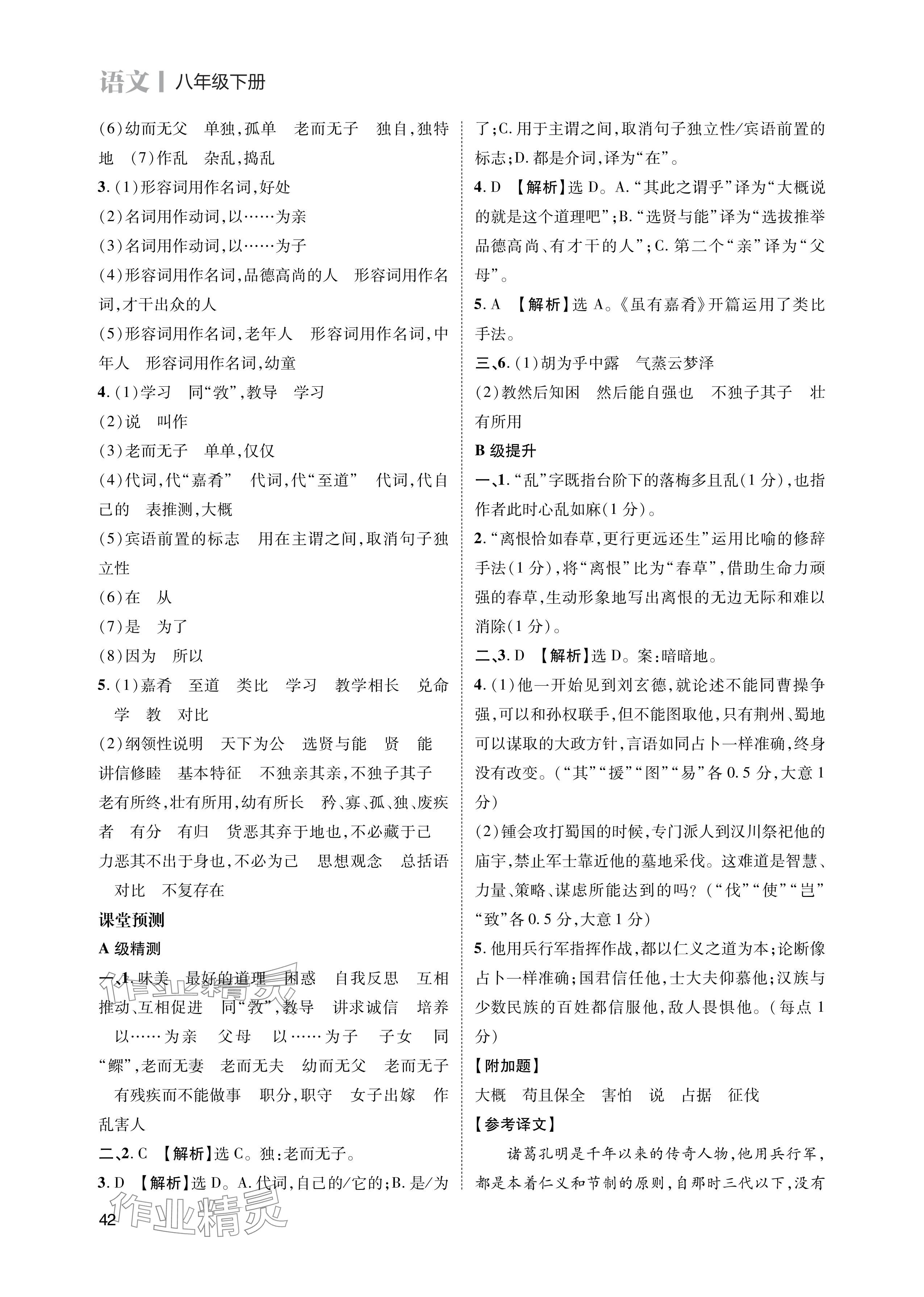 注:目前有些书本章节名称可能整理的还不是很完善,但都是按照顺序排列的,请同学们按照顺序仔细查找。练习册 2024年第一学堂八年级语文下册人教版 答案主要是用来给同学们做完题方便对答案用的,请勿直接抄袭。