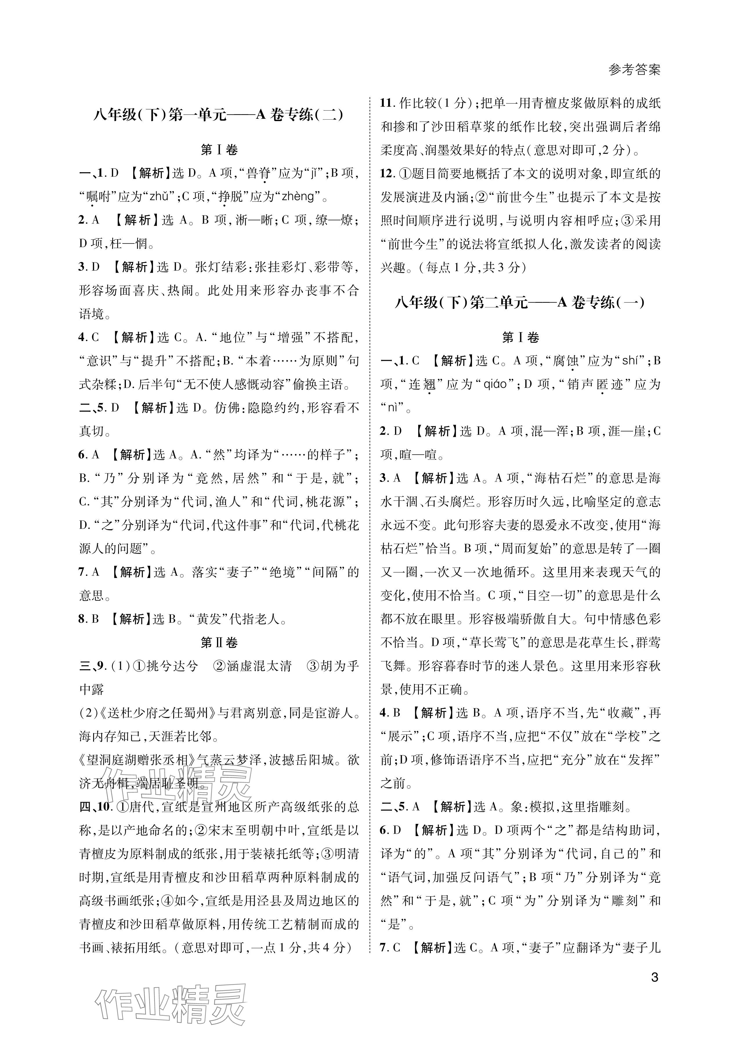 注:目前有些书本章节名称可能整理的还不是很完善,但都是按照顺序排列的,请同学们按照顺序仔细查找。练习册 2024年第一学堂八年级语文下册人教版 答案主要是用来给同学们做完题方便对答案用的,请勿直接抄袭。