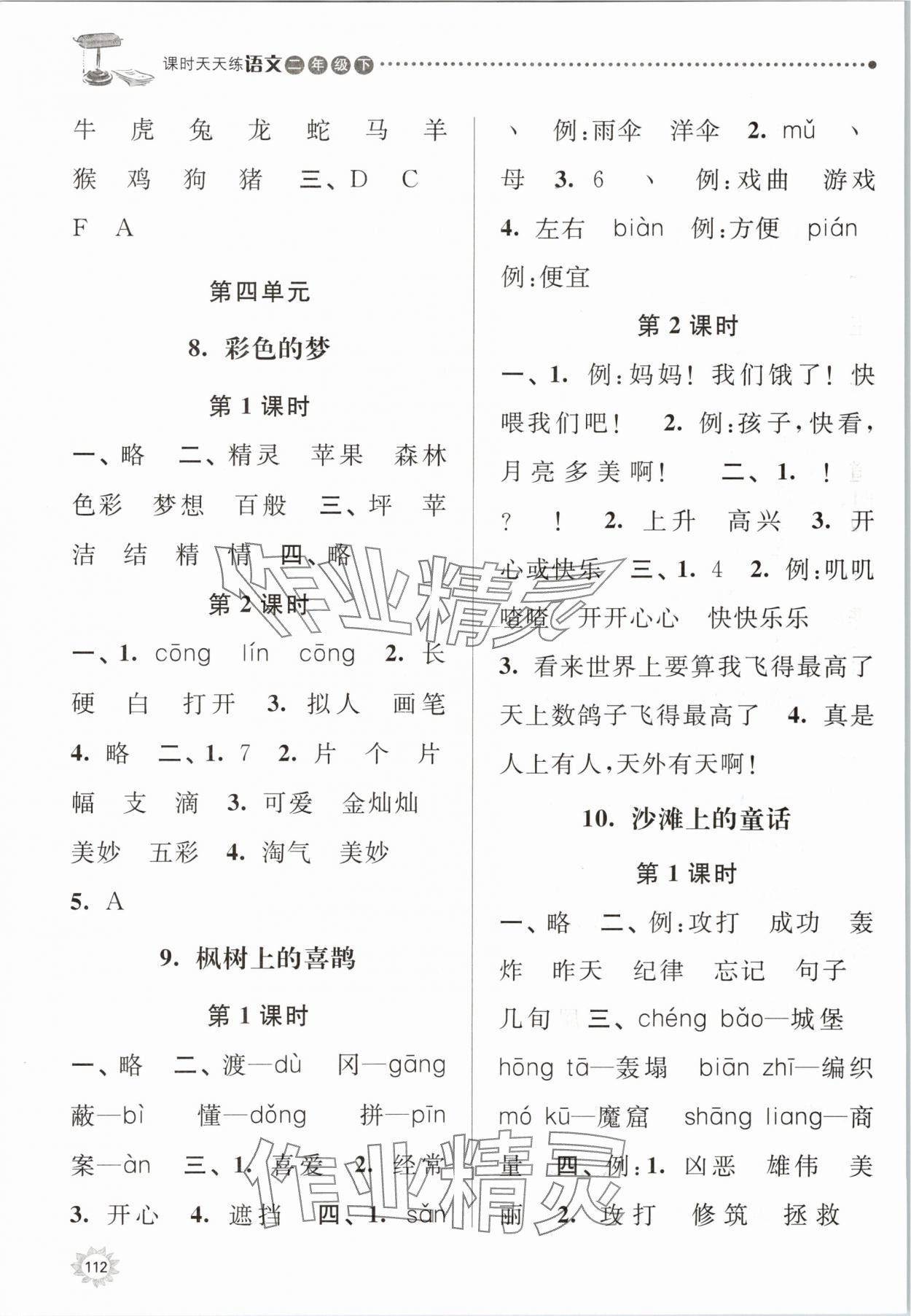 注:目前有些书本章节名称可能整理的还不是很完善,但都是按照顺序排列的,请同学们按照顺序仔细查找。练习册 2024年课时天天练二年级语文下册人教版 答案主要是用来给同学们做完题方便对答案用的,请勿直接抄袭。