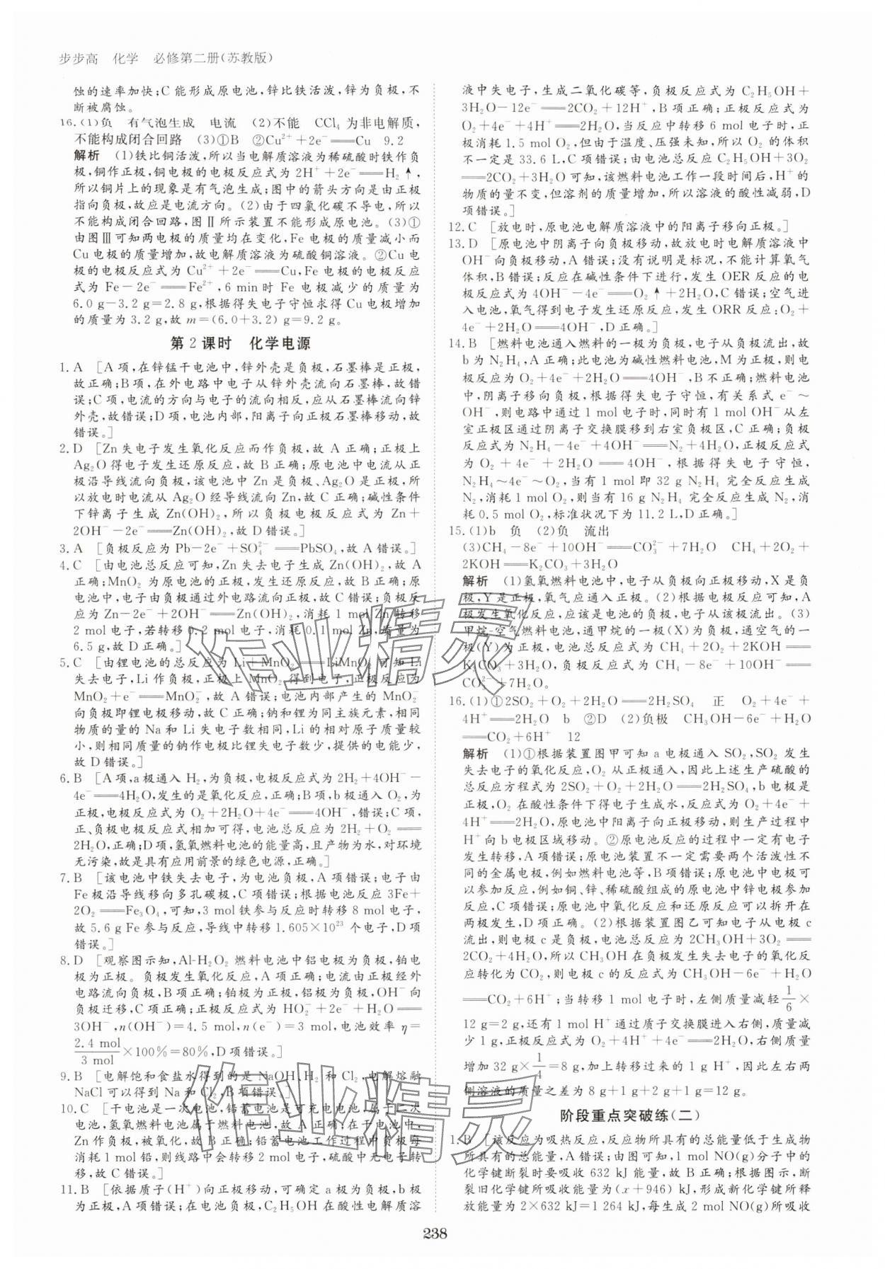 注:目前有些书本章节名称可能整理的还不是很完善,但都是按照顺序排列的,请同学们按照顺序仔细查找。练习册 2024年步步高学习笔记高中化学必修第二册苏教版 答案主要是用来给同学们做完题方便对答案用的,请勿直接抄袭。