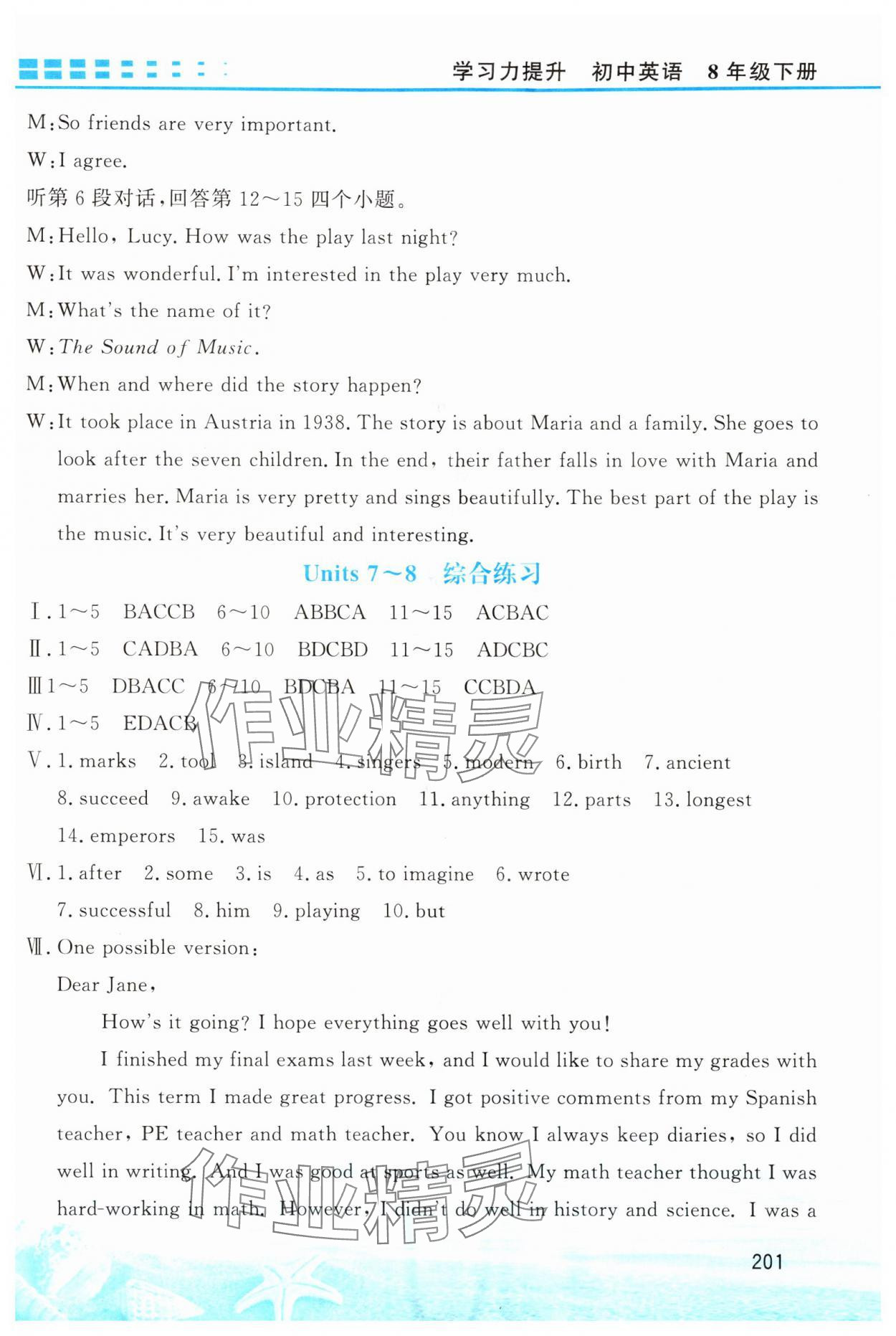 注:目前有些书本章节名称可能整理的还不是很完善,但都是按照顺序排列的,请同学们按照顺序仔细查找。练习册 2024年学习力提升八年级英语下册人教版 答案主要是用来给同学们做完题方便对答案用的,请勿直接抄袭。