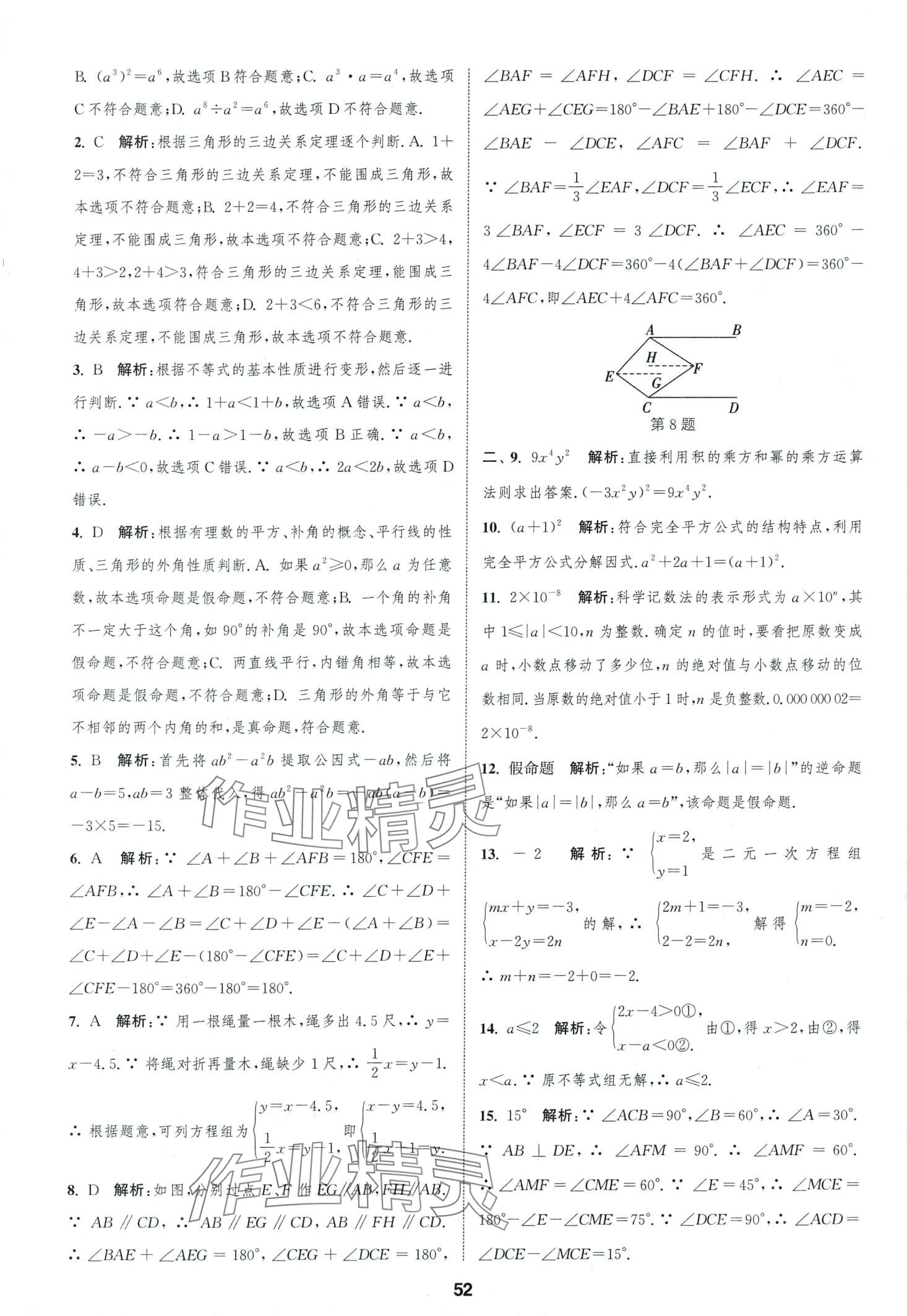 注:目前有些书本章节名称可能整理的还不是很完善,但都是按照顺序排列的,请同学们按照顺序仔细查找。练习册 2024年通城学典全程测评卷七年级数学下册苏科版 答案主要是用来给同学们做完题方便对答案用的,请勿直接抄袭。