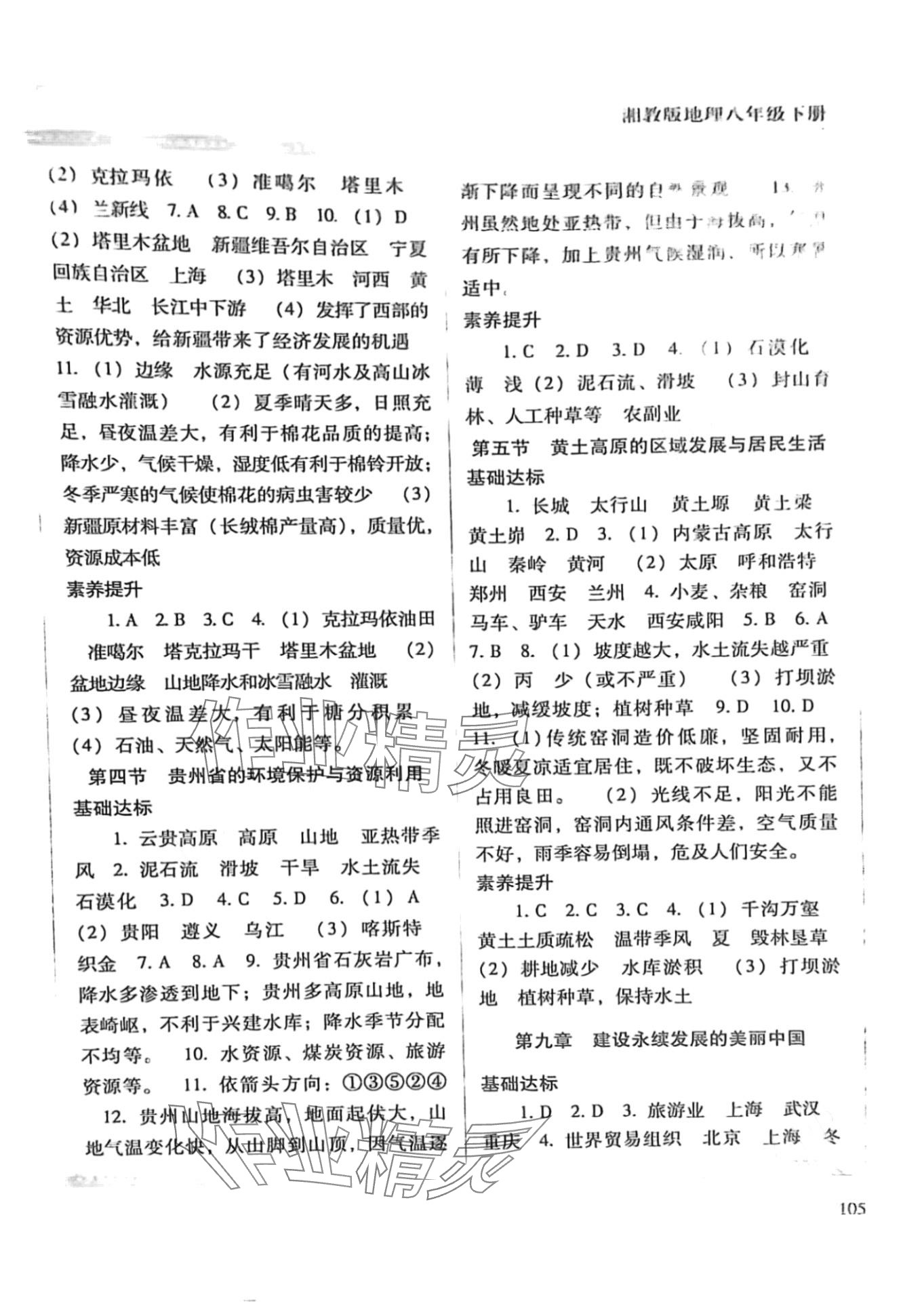 注:目前有些书本章节名称可能整理的还不是很完善,但都是按照顺序排列的,请同学们按照顺序仔细查找。练习册 2024年同步实践评价课程基础训练八年级地理下册湘教版 答案主要是用来给同学们做完题方便对答案用的,请勿直接抄袭。