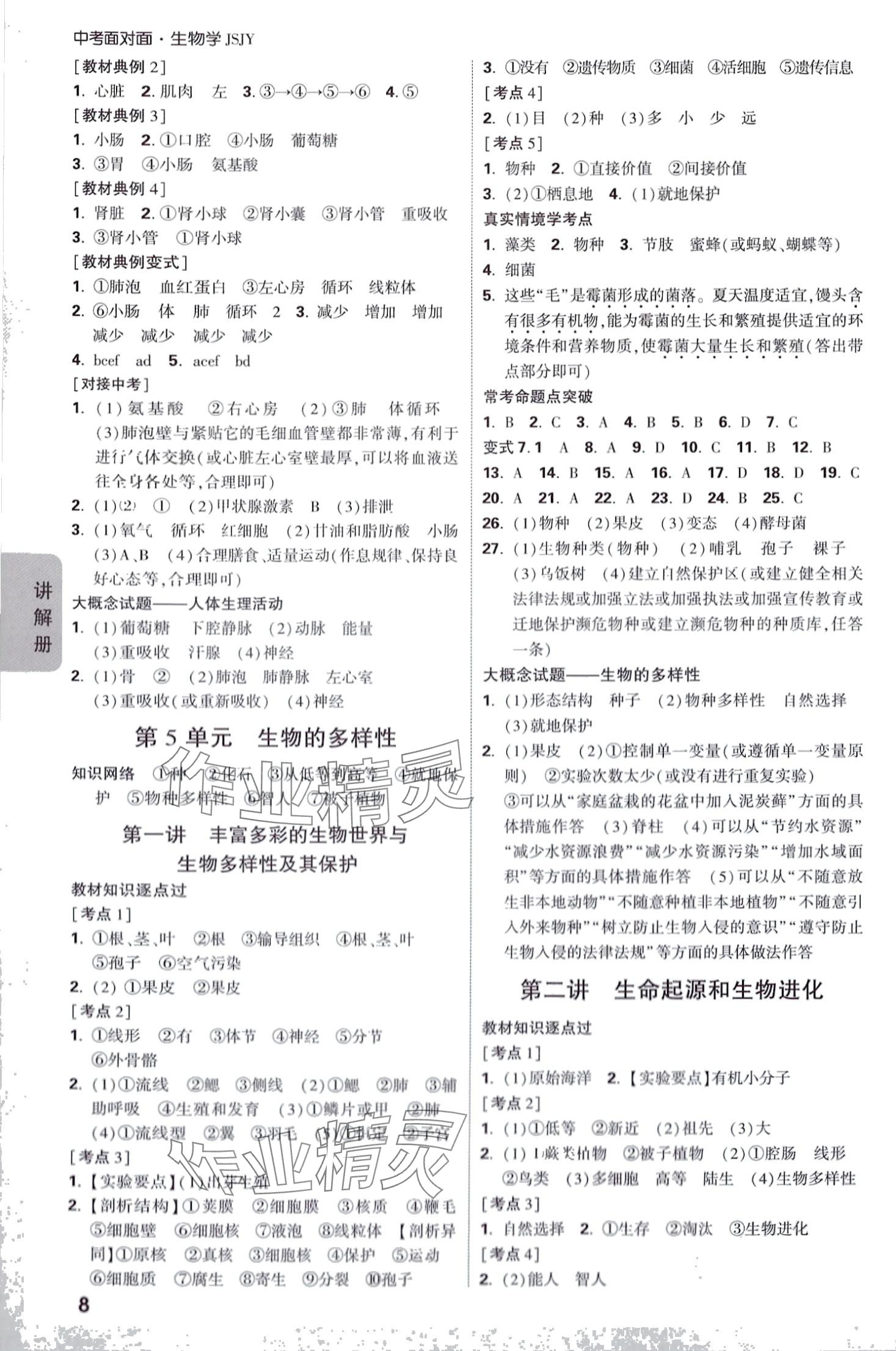 注:目前有些书本章节名称可能整理的还不是很完善,但都是按照顺序排列的,请同学们按照顺序仔细查找。练习册 2024年中考面对面生物中考苏教版 答案主要是用来给同学们做完题方便对答案用的,请勿直接抄袭。