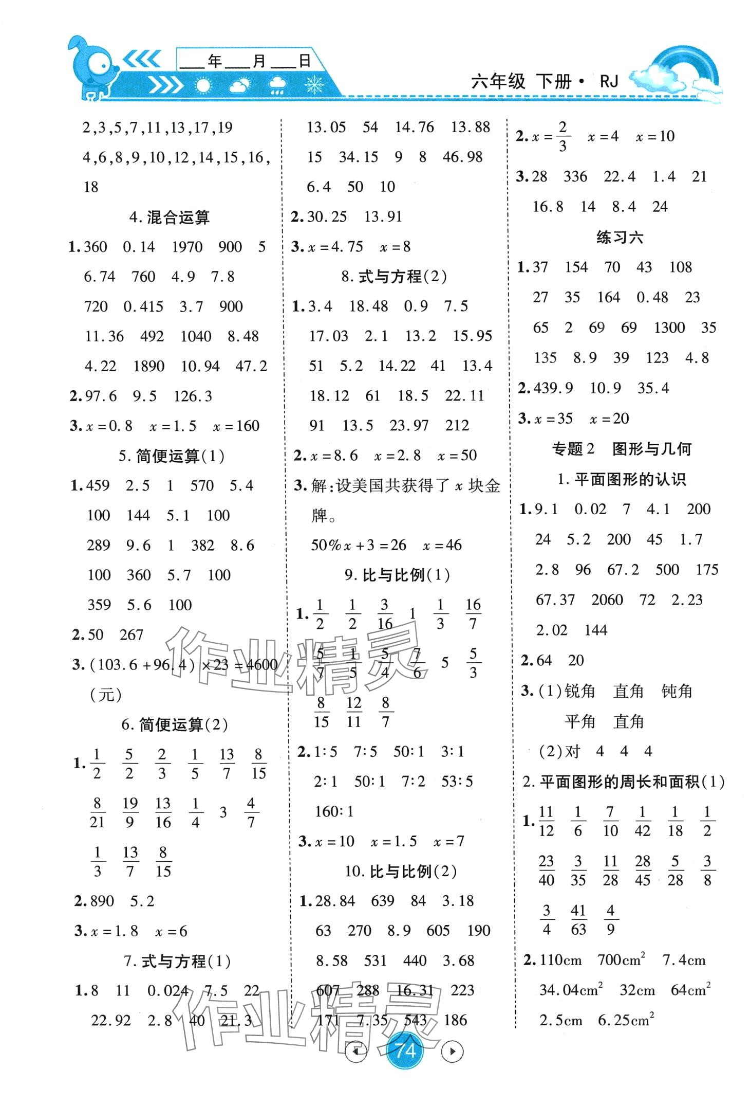 注:目前有些书本章节名称可能整理的还不是很完善,但都是按照顺序排列的,请同学们按照顺序仔细查找。练习册 2024年小状元数学天天练口算题卡大通关六年级下册人教版 答案主要是用来给同学们做完题方便对答案用的,请勿直接抄袭。