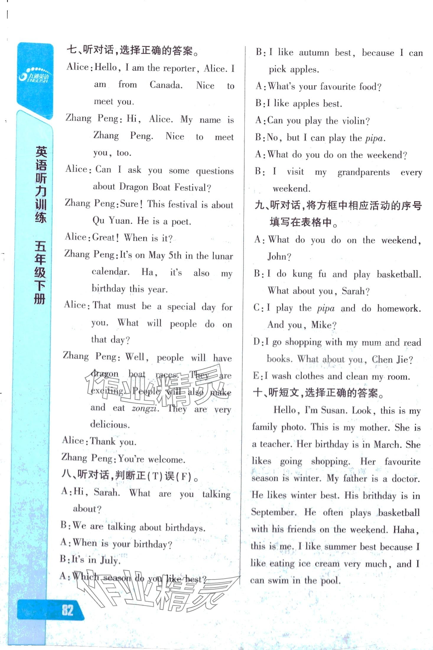 注:目前有些书本章节名称可能整理的还不是很完善,但都是按照顺序排列的,请同学们按照顺序仔细查找。练习册 2024年长江全能学案英语听力训练五年级人教版 答案主要是用来给同学们做完题方便对答案用的,请勿直接抄袭。