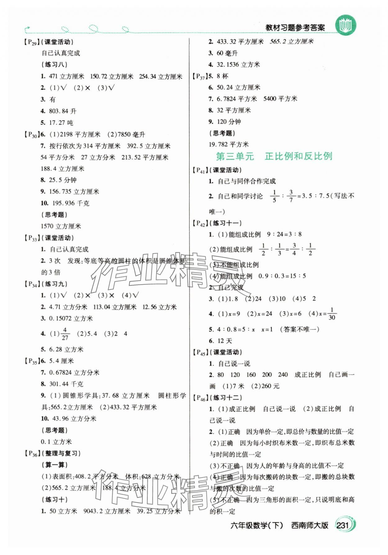 注:目前有些书本章节名称可能整理的还不是很完善,但都是按照顺序排列的,请同学们按照顺序仔细查找。练习册 2024年倍速学习法六年级数学下册西师大版 答案主要是用来给同学们做完题方便对答案用的,请勿直接抄袭。