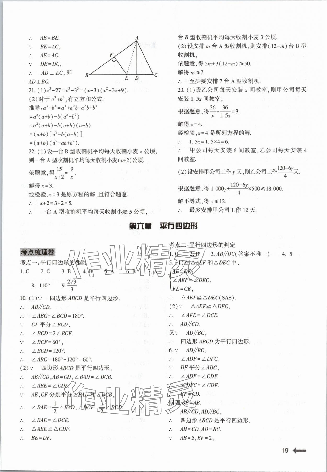 注:目前有些书本章节名称可能整理的还不是很完善,但都是按照顺序排列的,请同学们按照顺序仔细查找。练习册 2024年节节高大象出版社八年级数学下册北师大版 答案主要是用来给同学们做完题方便对答案用的,请勿直接抄袭。