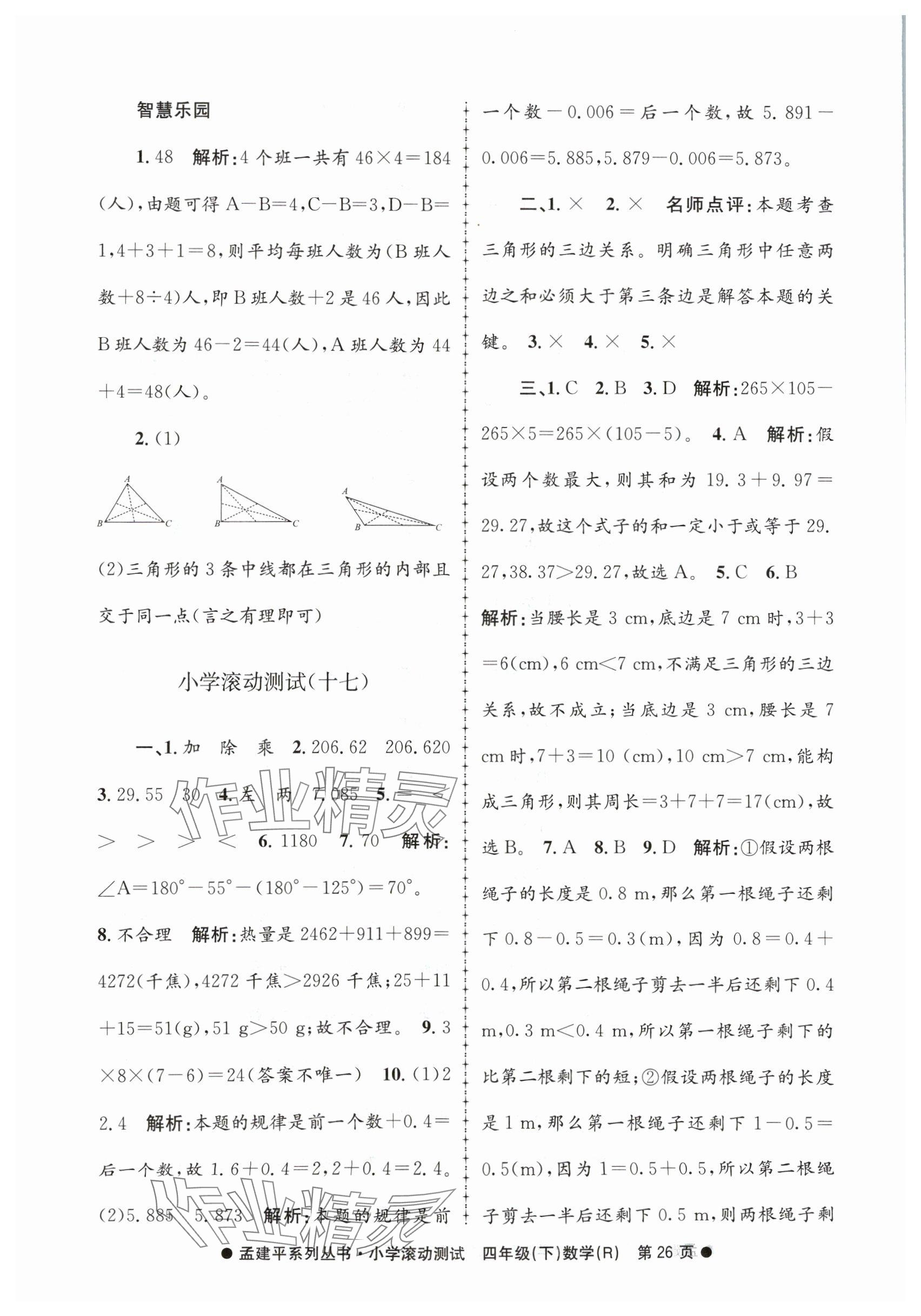 注:目前有些书本章节名称可能整理的还不是很完善,但都是按照顺序排列的,请同学们按照顺序仔细查找。练习册 2024年孟建平小学滚动测试四年级数学下册人教版 答案主要是用来给同学们做完题方便对答案用的,请勿直接抄袭。