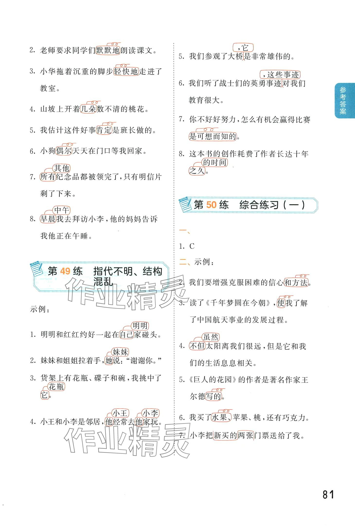 注:目前有些书本章节名称可能整理的还不是很完善,但都是按照顺序排列的,请同学们按照顺序仔细查找。练习册 2024年句式训练大全四年级语文下册 答案主要是用来给同学们做完题方便对答案用的,请勿直接抄袭。
