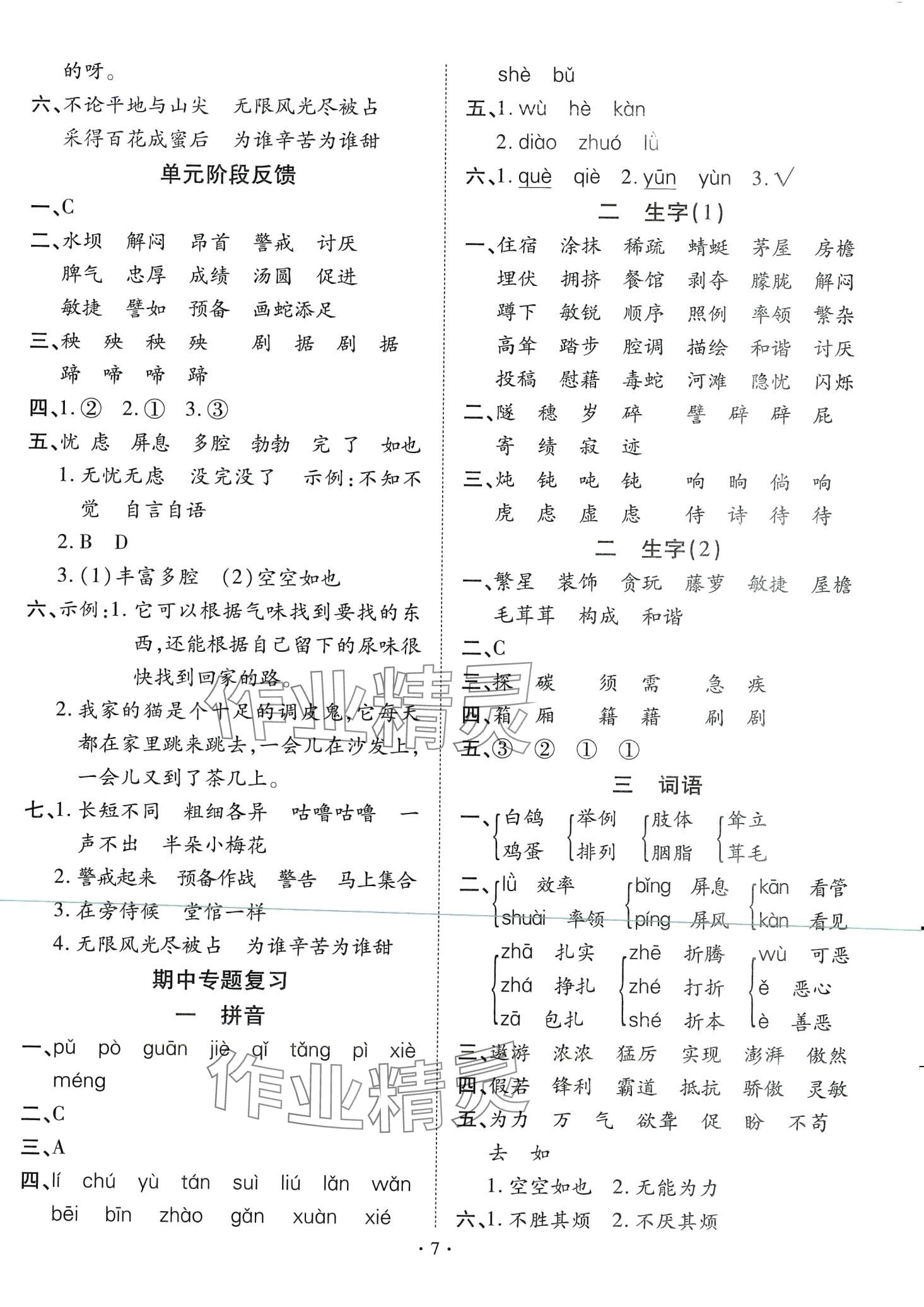 注:目前有些书本章节名称可能整理的还不是很完善,但都是按照顺序排列的,请同学们按照顺序仔细查找。练习册 2024年默写小英才四年级语文下册人教版 答案主要是用来给同学们做完题方便对答案用的,请勿直接抄袭。