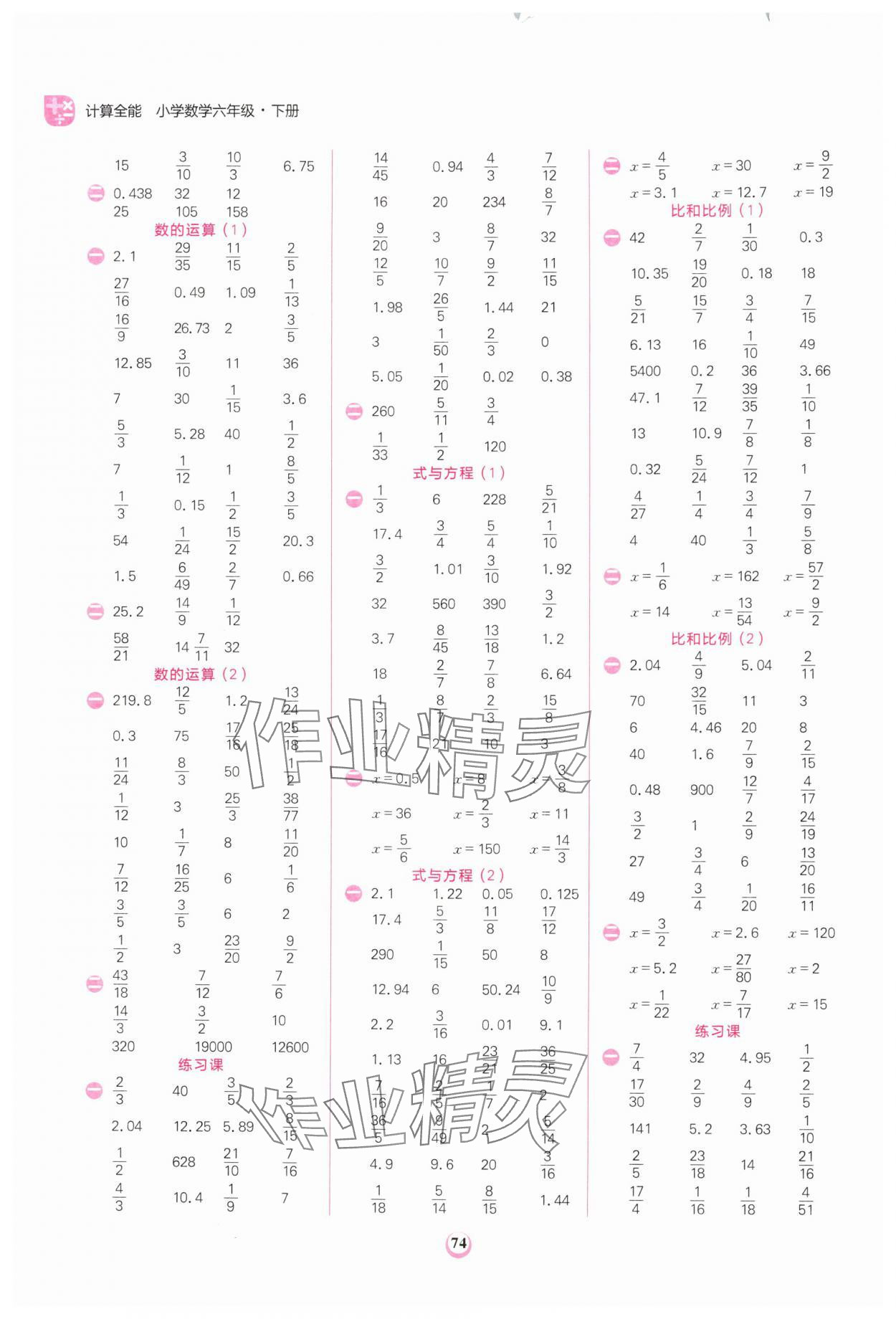 注:目前有些书本章节名称可能整理的还不是很完善,但都是按照顺序排列的,请同学们按照顺序仔细查找。练习册 2024年计算全能六年级数学下册人教版 答案主要是用来给同学们做完题方便对答案用的,请勿直接抄袭。