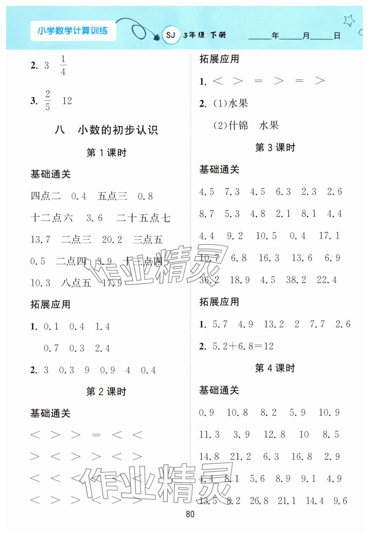 注:目前有些书本章节名称可能整理的还不是很完善,但都是按照顺序排列的,请同学们按照顺序仔细查找。练习册 2024年计算训练南京大学出版社三年级数学下册苏教版 答案主要是用来给同学们做完题方便对答案用的,请勿直接抄袭。