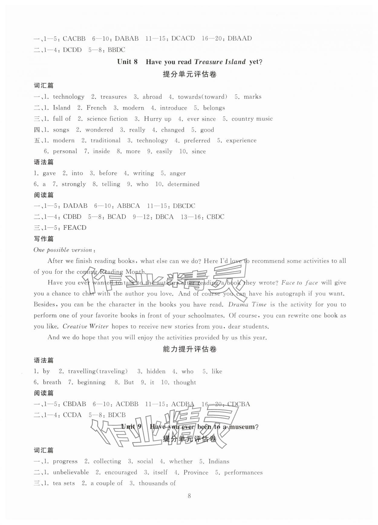 注:目前有些书本章节名称可能整理的还不是很完善,但都是按照顺序排列的,请同学们按照顺序仔细查找。练习册 2024年重点中学与你有约八年级英语下册人教版 答案主要是用来给同学们做完题方便对答案用的,请勿直接抄袭。