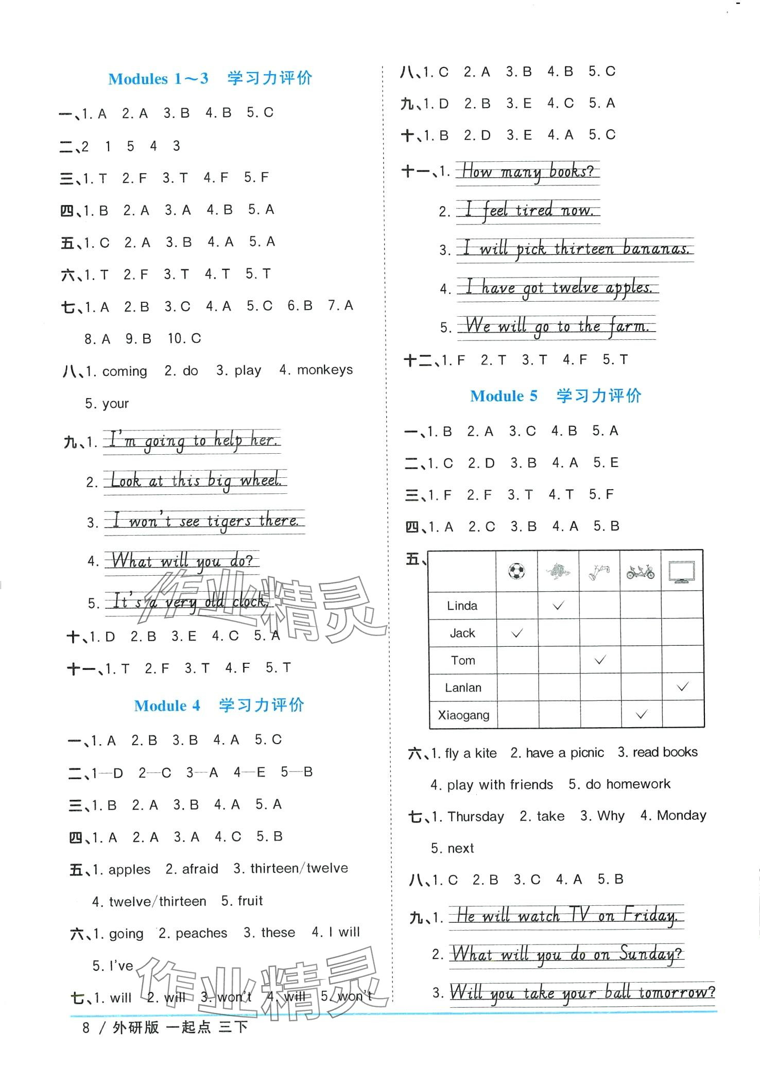 注:目前有些书本章节名称可能整理的还不是很完善,但都是按照顺序排列的,请同学们按照顺序仔细查找。练习册 2024年阳光同学课时优化作业三年级英语下册外研版一年级起 答案主要是用来给同学们做完题方便对答案用的,请勿直接抄袭。
