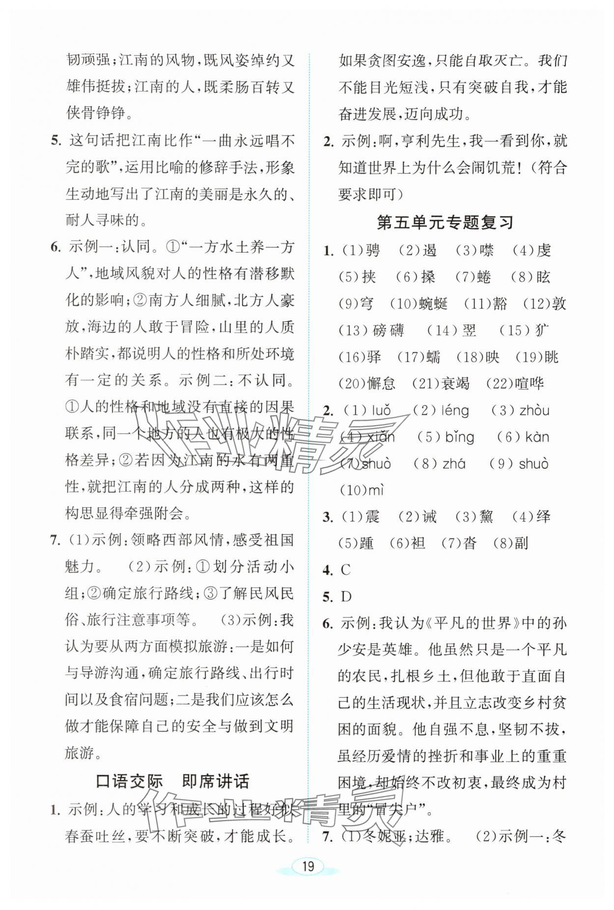 注:目前有些书本章节名称可能整理的还不是很完善,但都是按照顺序排列的,请同学们按照顺序仔细查找。练习册 2024年教与学浙江教育出版社八年级语文下册人教版 答案主要是用来给同学们做完题方便对答案用的,请勿直接抄袭。