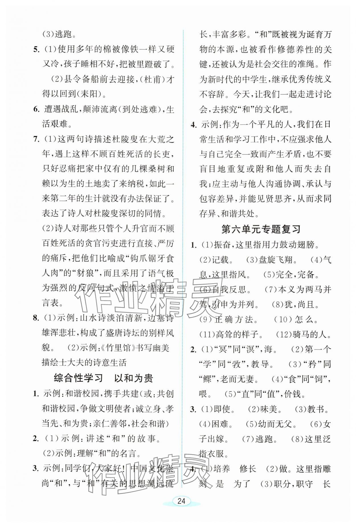 注:目前有些书本章节名称可能整理的还不是很完善,但都是按照顺序排列的,请同学们按照顺序仔细查找。练习册 2024年教与学浙江教育出版社八年级语文下册人教版 答案主要是用来给同学们做完题方便对答案用的,请勿直接抄袭。