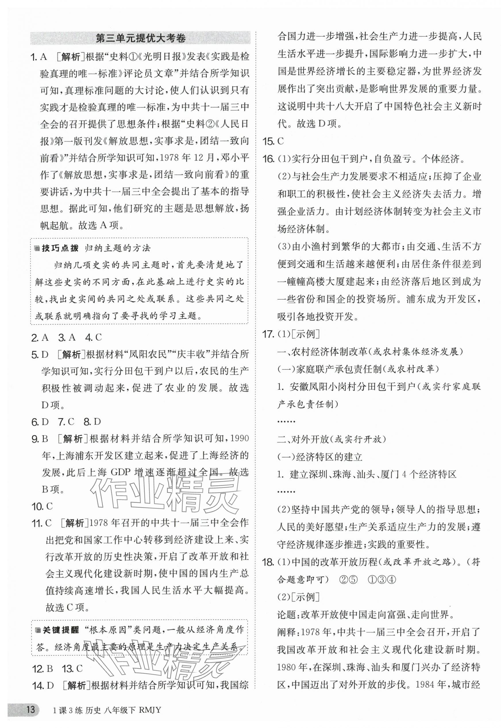 注:目前有些书本章节名称可能整理的还不是很完善,但都是按照顺序排列的,请同学们按照顺序仔细查找。练习册 2024年1课3练单元达标测试八年级历史下册人教版 答案主要是用来给同学们做完题方便对答案用的,请勿直接抄袭。