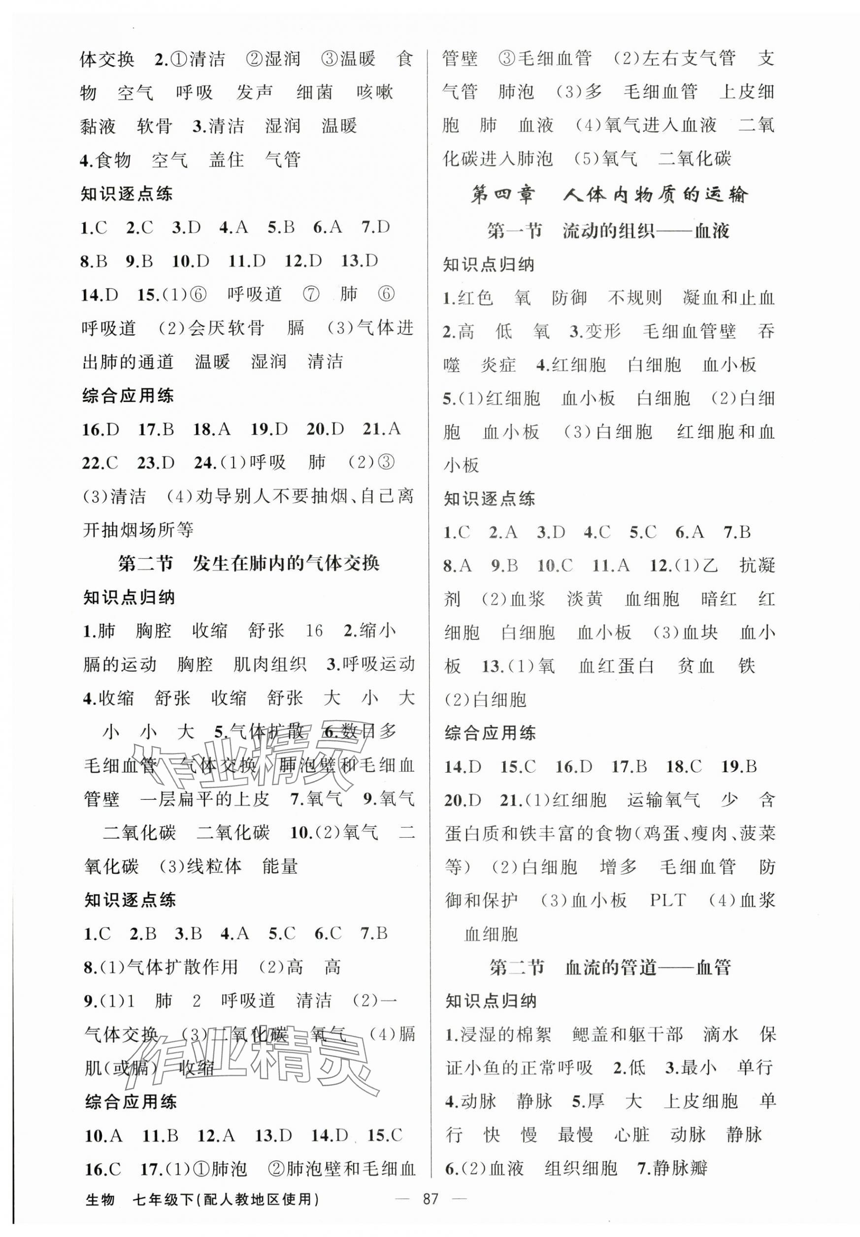 2024年黄冈金牌之路练闯考七年级生物下册人教版
