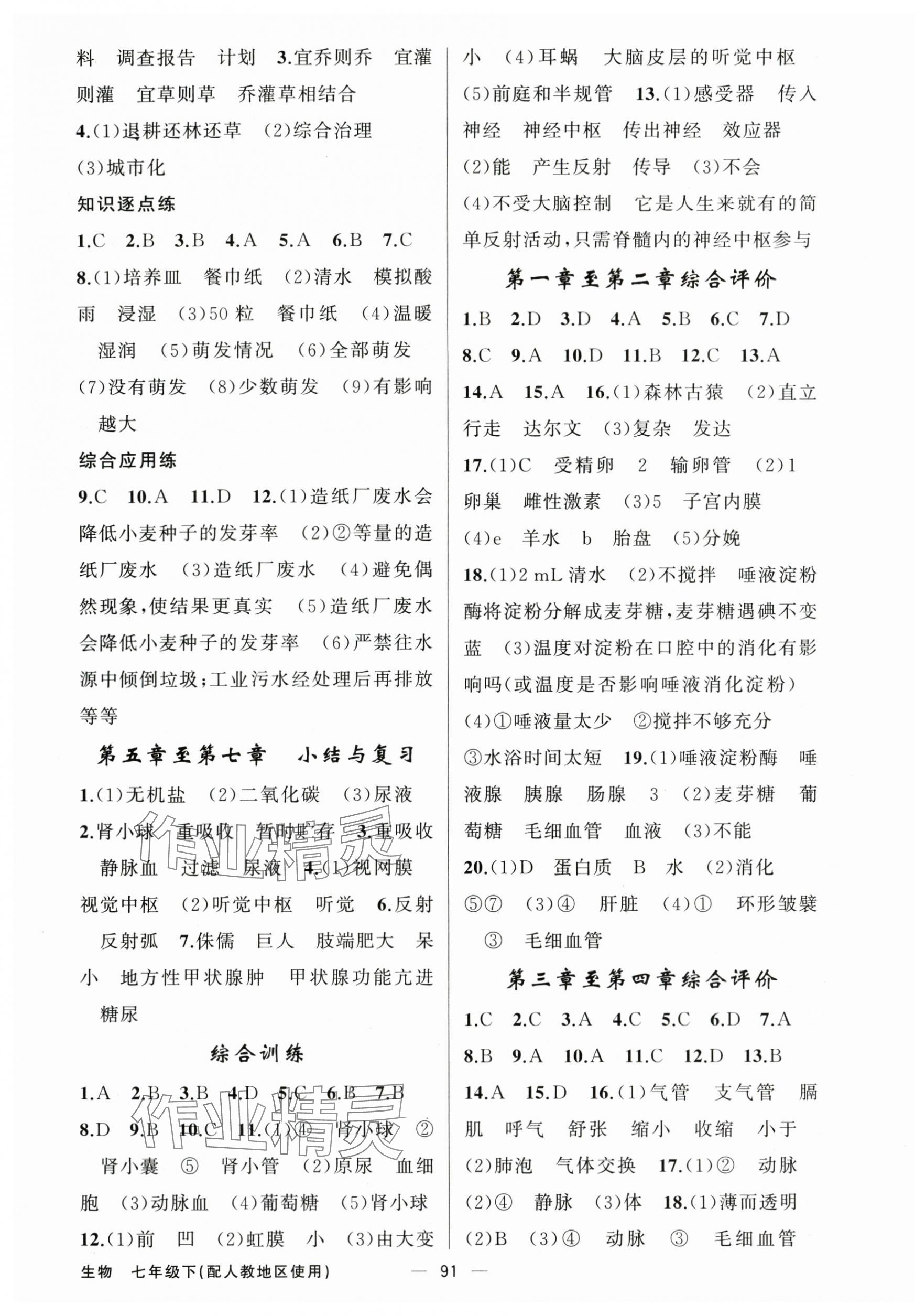 2024年黄冈金牌之路练闯考七年级生物下册人教版