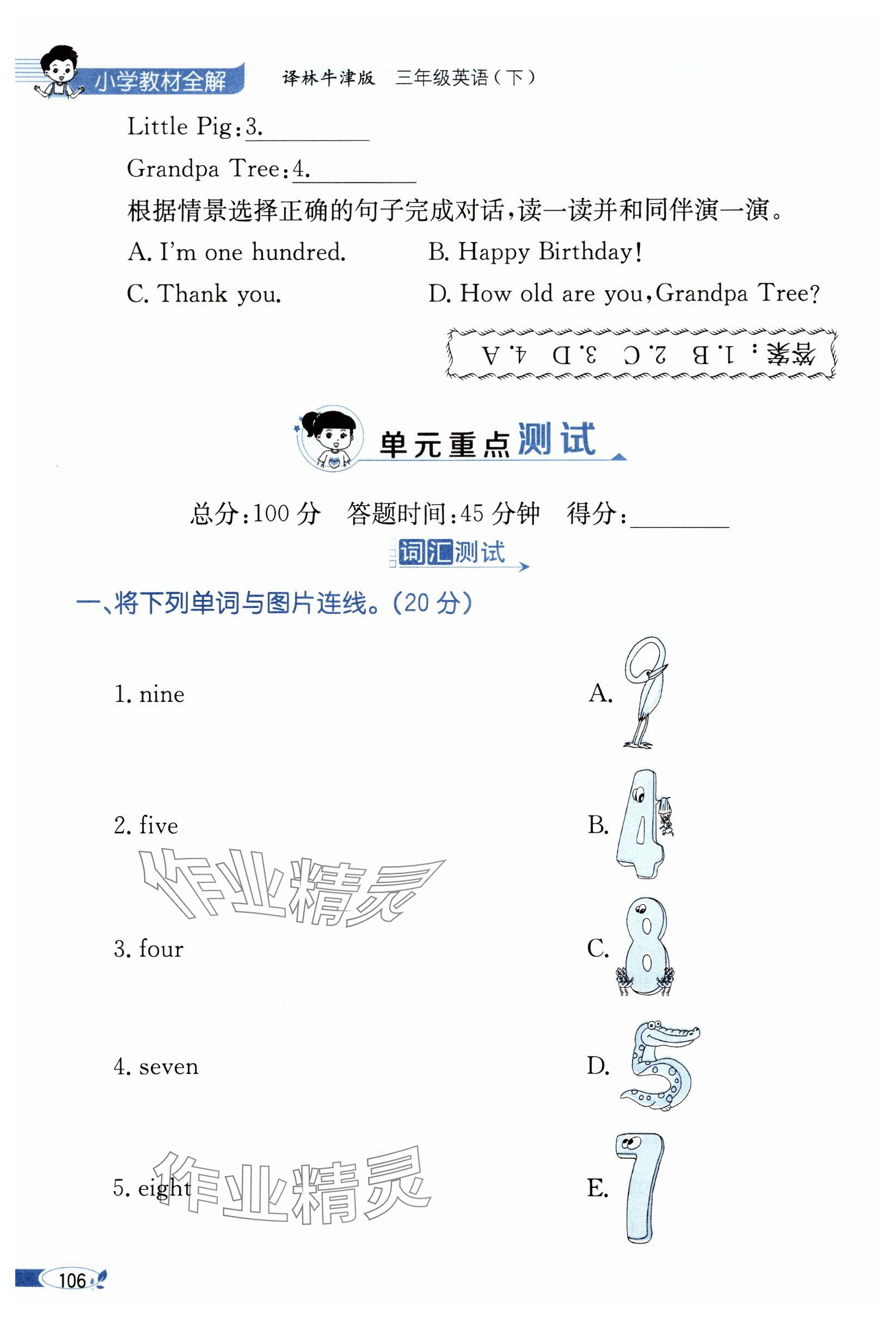 注:目前有些书本章节名称可能整理的还不是很完善,但都是按照顺序排列的,请同学们按照顺序仔细查找。练习册 2024年教材课本三年级英语下册译林版 答案主要是用来给同学们做完题方便对答案用的,请勿直接抄袭。