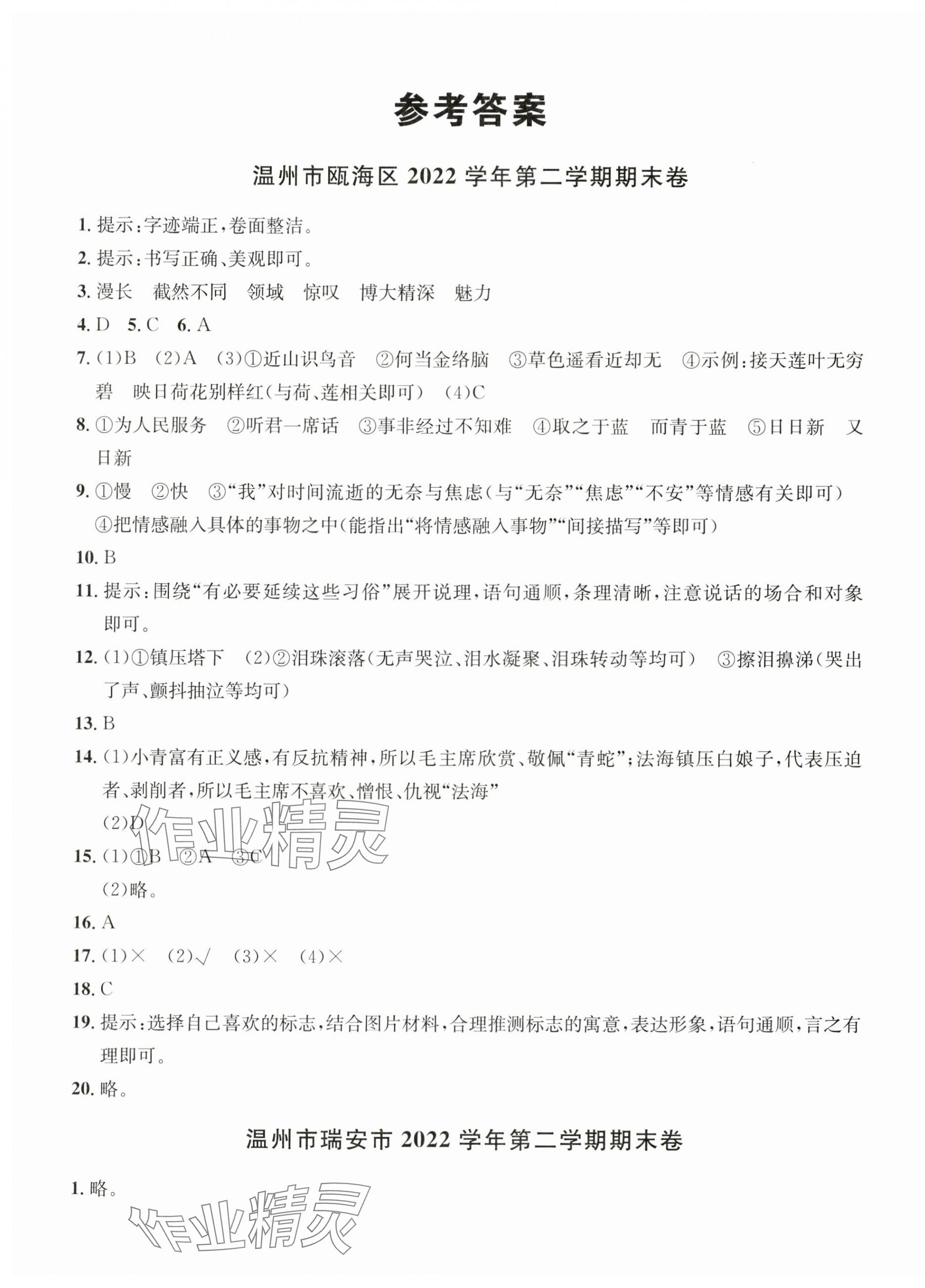注:目前有些书本章节名称可能整理的还不是很完善,但都是按照顺序排列的,请同学们按照顺序仔细查找。练习册 2024年浙点通提优卷六年级语文下册人教版 答案主要是用来给同学们做完题方便对答案用的,请勿直接抄袭。