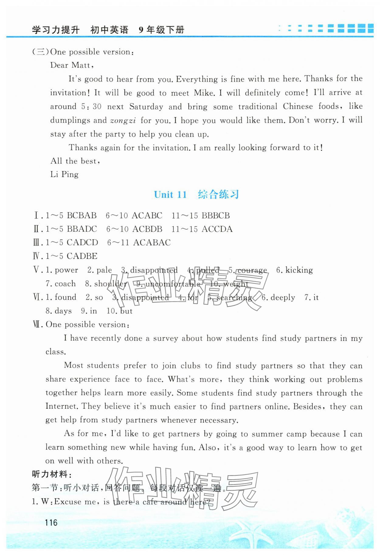 注:目前有些书本章节名称可能整理的还不是很完善,但都是按照顺序排列的,请同学们按照顺序仔细查找。练习册 2024年学习力提升九年级英语下册人教版 答案主要是用来给同学们做完题方便对答案用的,请勿直接抄袭。